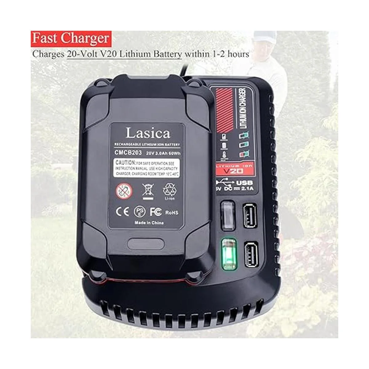 Cargador de batería Craftsman CMCB104, Lasica 20V Max Fast Charger compatible con batería de litio Craftsman V20 Series CMCB202 CMCB204 CMCB206 CMCB201 CMCB100 CMCB124 Cargador de herramientas eléctricas