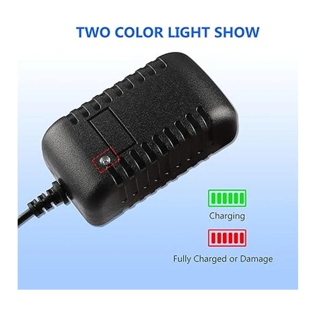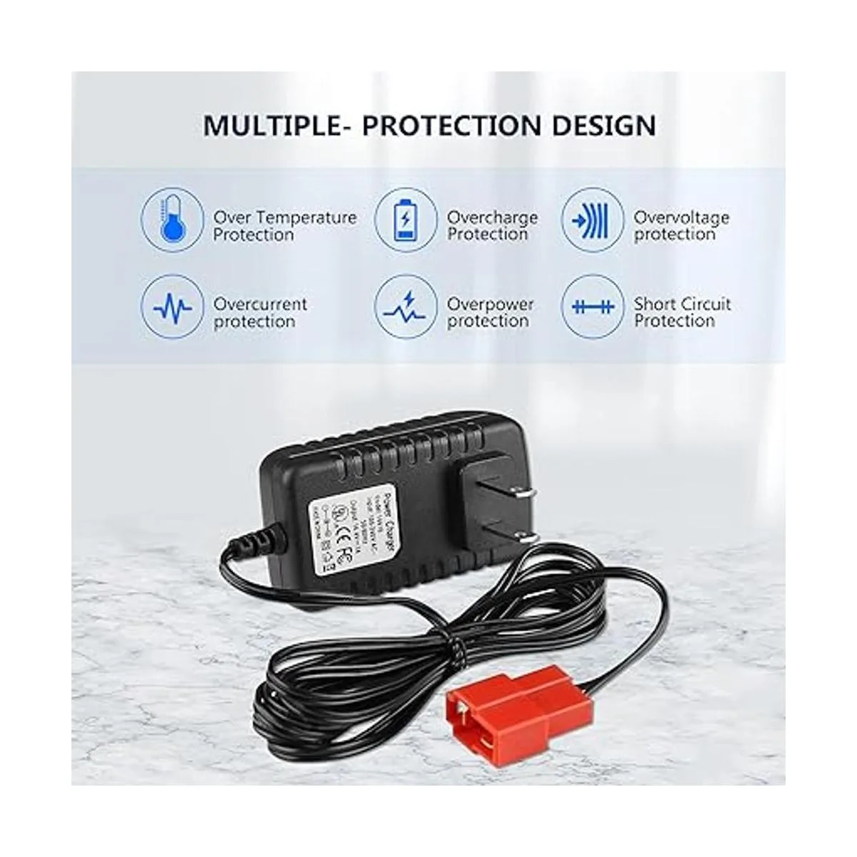 Especificaciones de alimentación : Entrada: CA 100240 V 50/60 Hz; Salida: CC 14.4 V 1 A; Conector: enchufe tipo cuadrado; Longitud del cable: 6.6 pies; Modelo: SL120702. Solo se adapta a baterías de 12 voltios con conector rojo Nota: el voltaje de salida de 14,4 V es aplicable a la batería de 12 V, y la batería de 12 V no se puede cargar completamente con un voltaje inferior a 14,4 V