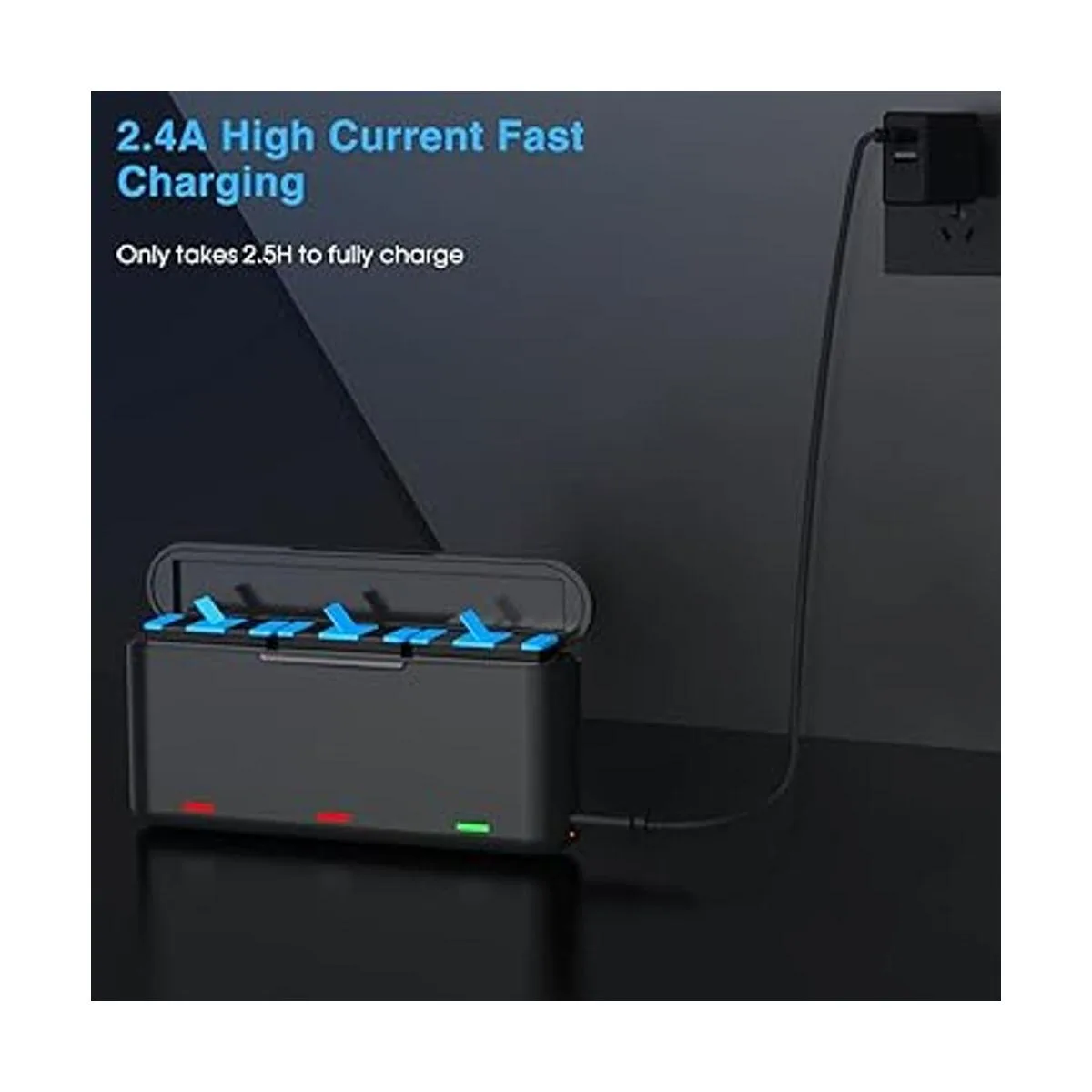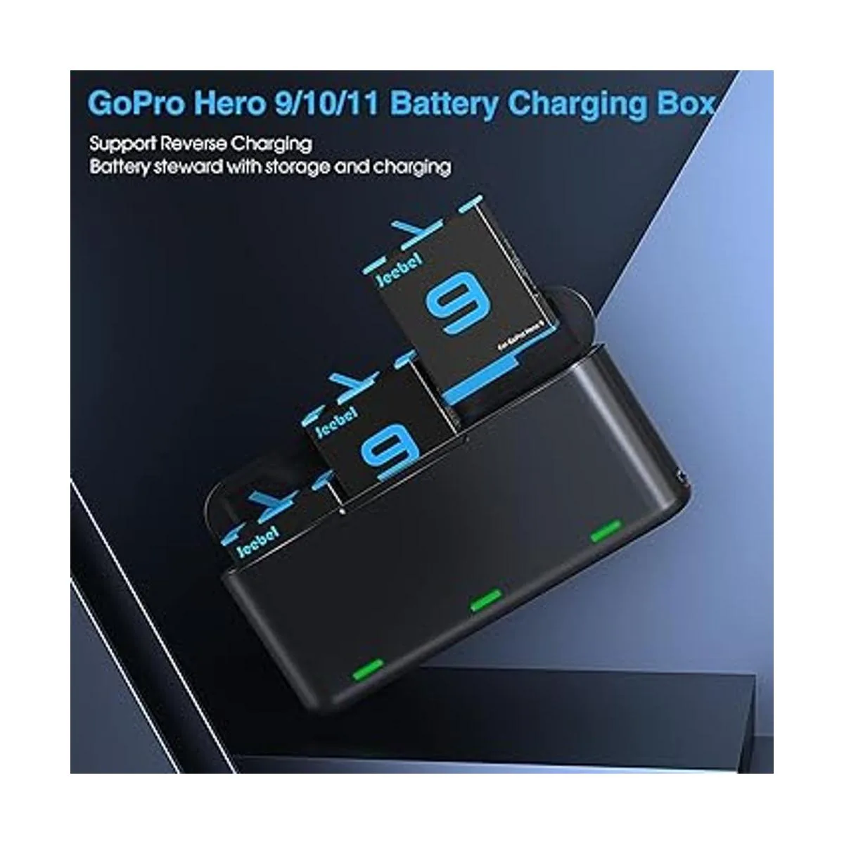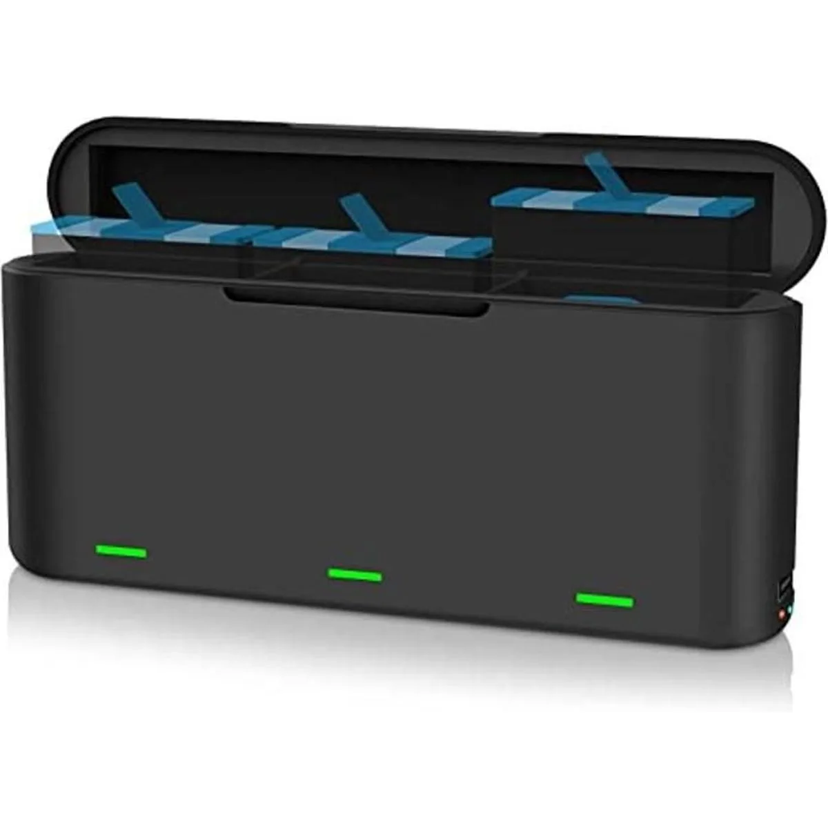 Innovador cargador todo en uno para GoPro Hero 9/10/11 Rendimiento dúplex con cargador independiente y carga inversa como fuente de alimentación externa a la cámara. Maximiza la duración operativa sin cambiar las baterías. Nota: el cargador de batería no es fuente de alimentación. Se puede utilizar como un banco de energía solo cuando la batería está insertada.