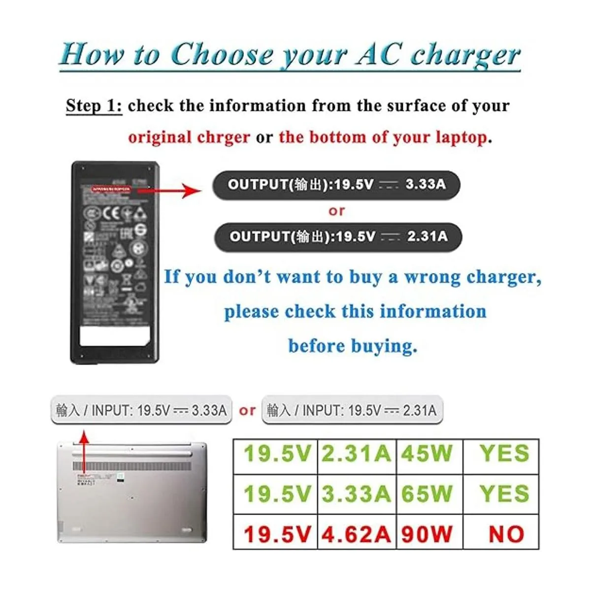 100 nuevo del fabricante, 100 compatibilidad con el cargador de CA para laptop OEM, certificado de seguridad CE/FCC/ROHS. Paquete: 1 adaptador de corriente de CA y 1 cable de alimentación de CA de 4.92 pies y 1 manual de usuario idioma español no garantizado