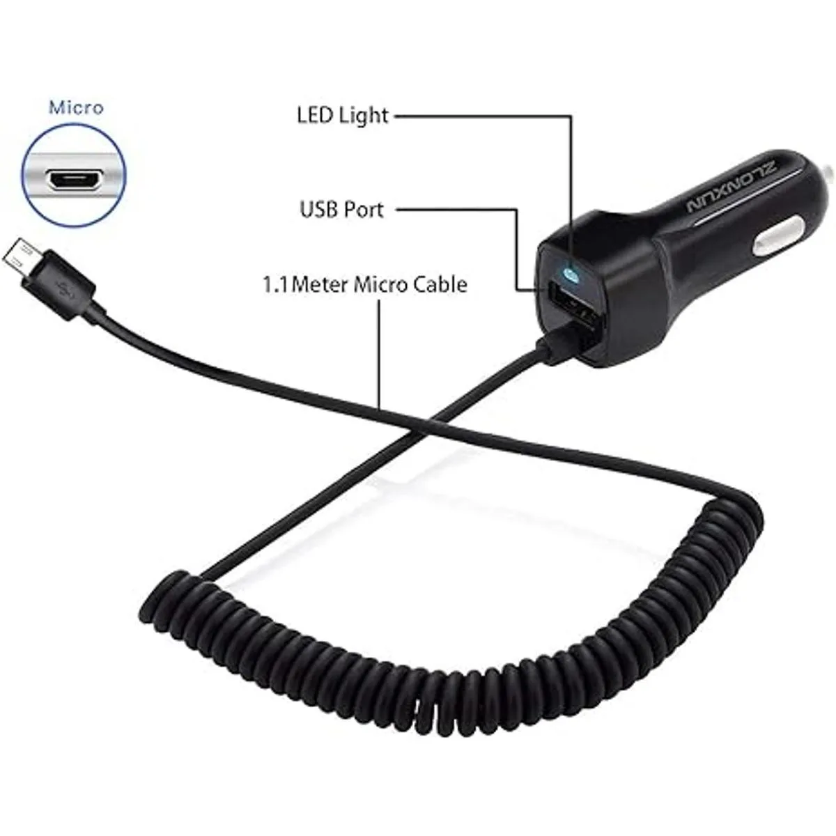 Cargador de coche con cable micro USB para Samsung Galaxy S7S7 EdgeS6J7J8A10J6A9, LG K20K30G4Stylo 3, Motorola XMoto E7E6G5, HTC m9m8, otros dispositivos micro USB