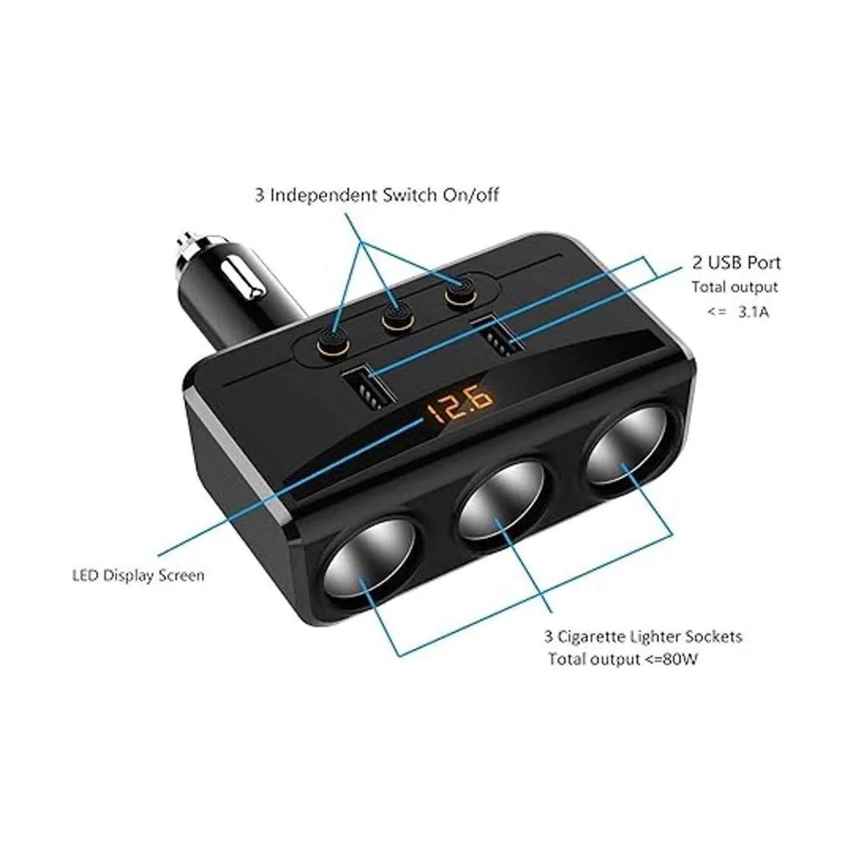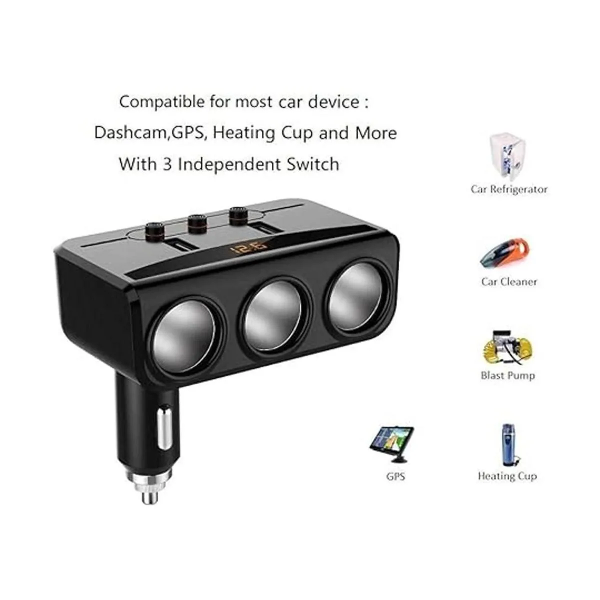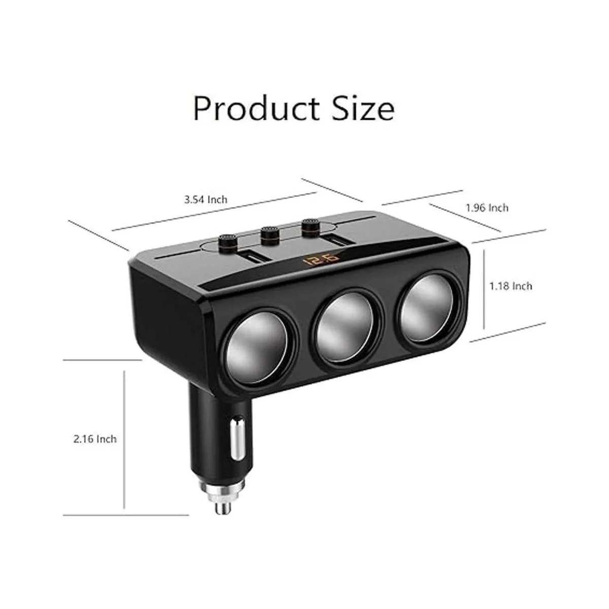 Cargador de coche con doble USB, 3 enchufes para encendedor de cigarrillos, adaptador con monitor voltímetro para coche de 12 V, 24 V, compatible con iPhone, LG, HTC, Samsung, Blackberry, etc.