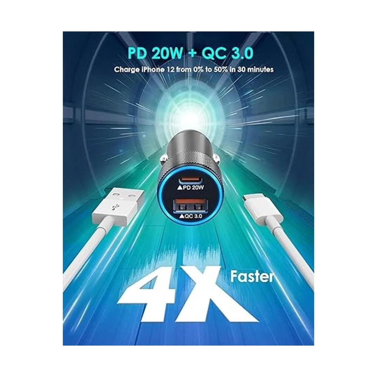 Carga eficiente: el cargador de coche tiene carga rápida PD de 20 W y QC3.0, carga de 0 a 50 en 30 minutos para iPhone 12 y iPhone 8 modelos posteriores 4 veces más rápido que un cargador original de 5 W.