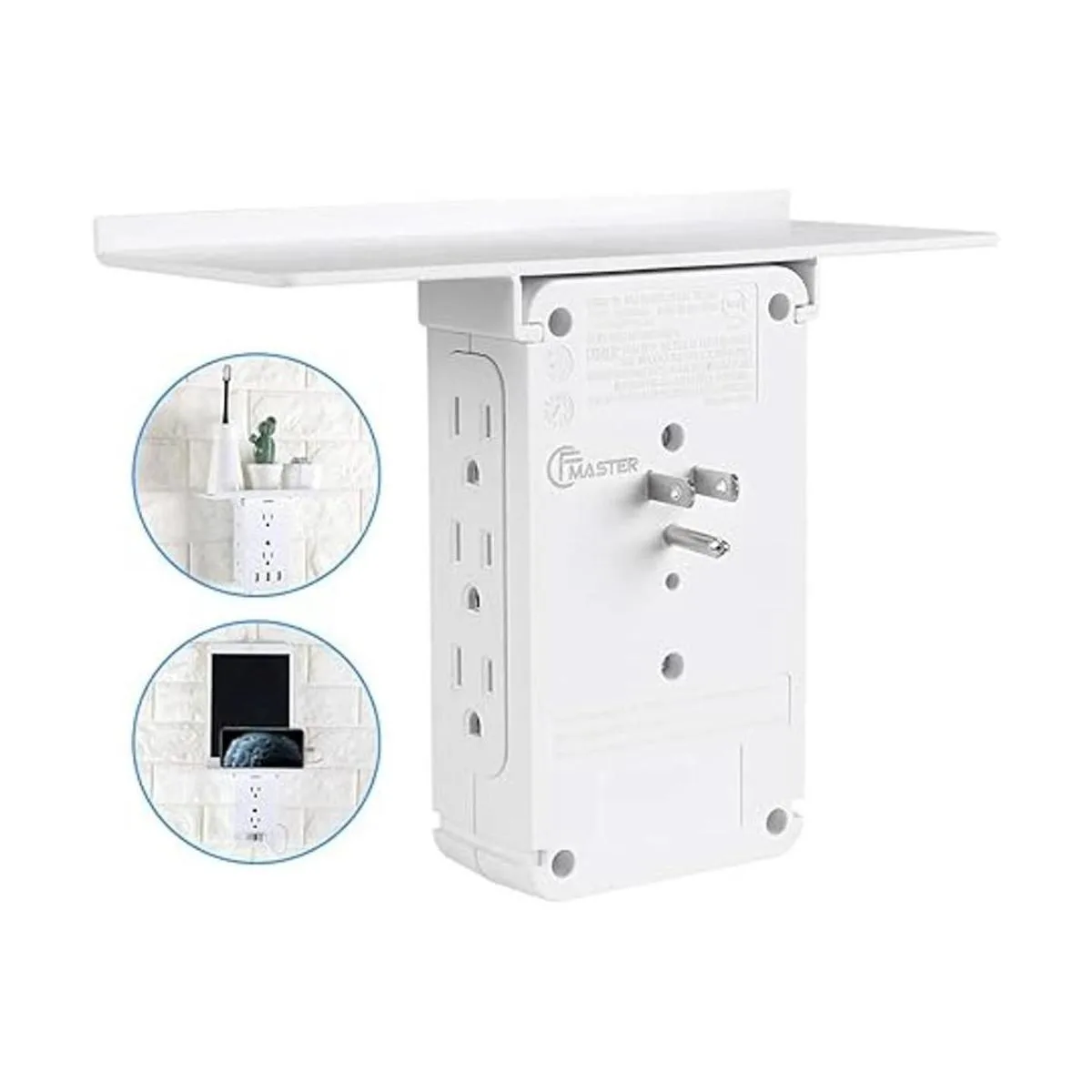Cargador de corriente CFMASTER 11 puertos de salida de pared, 8 extensores de toma de corriente y 3 puertos USB 3.4A, con estante extraíble integrado e indicador LED, lista FCC, blanco