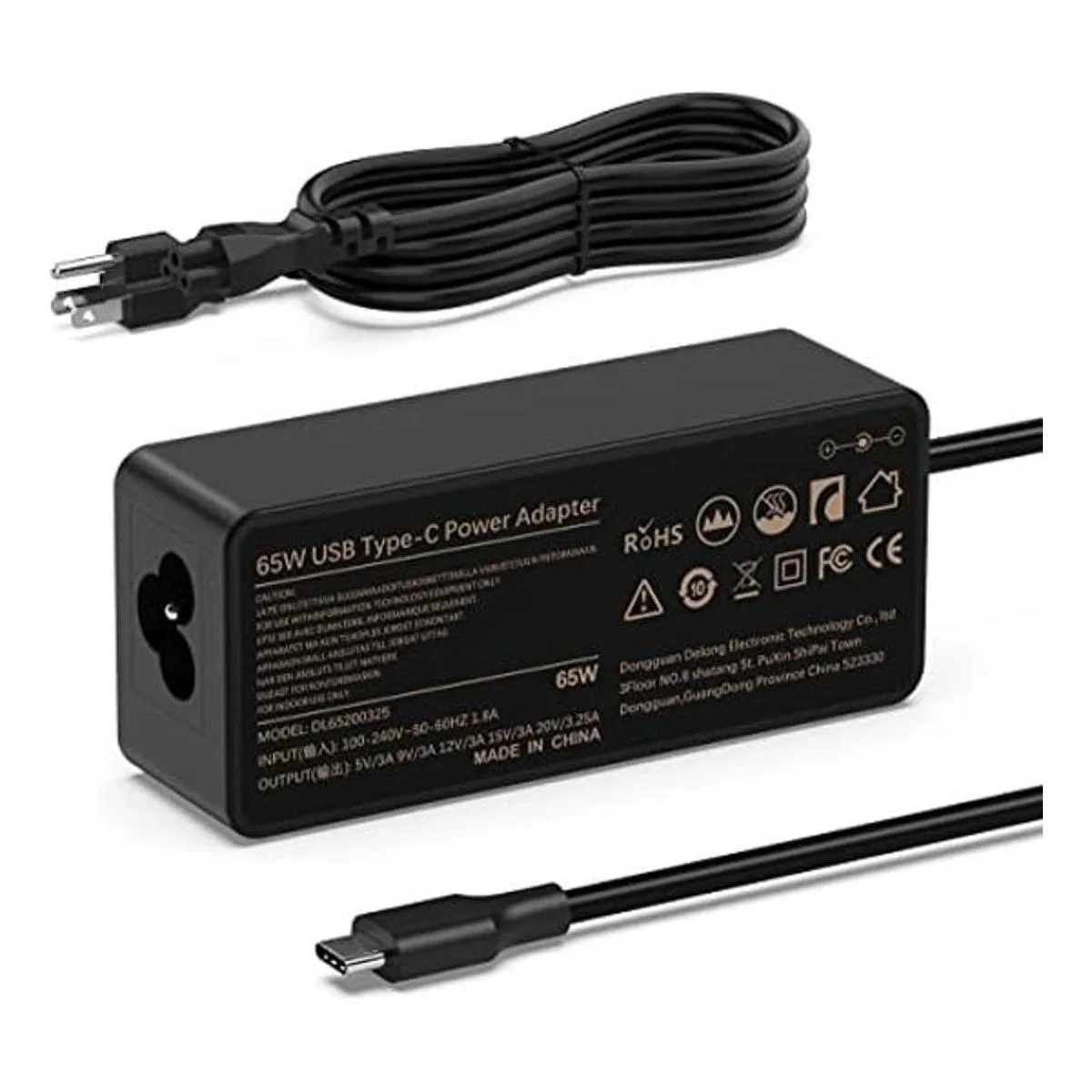 Cargador de laptop de 65 W USB tipo C adaptador de CA de repuesto para HP Chromebook 14, 13 X360 Spectre x360 Elite x2 EliteBook; Lenovo Yoga, Dell, ASUS, Acer tipo C adaptador de fuente de alimentación con cable