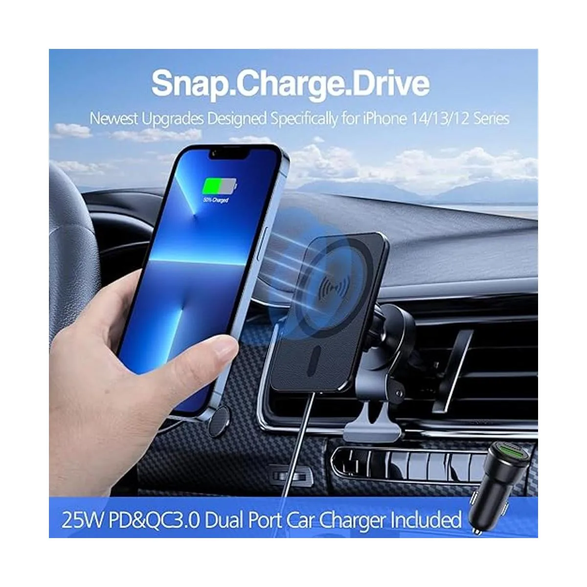 Cargador de montaje para automóvil MagSafe cargador inalámbrico magnético para automóvil, cargador de automóvil MagSafe, cargador magnético de ventilación de aire, soporte de teléfono compatible con MagSafe iPhone 14 13 12 Series, con cargador de coche PD de 25 W