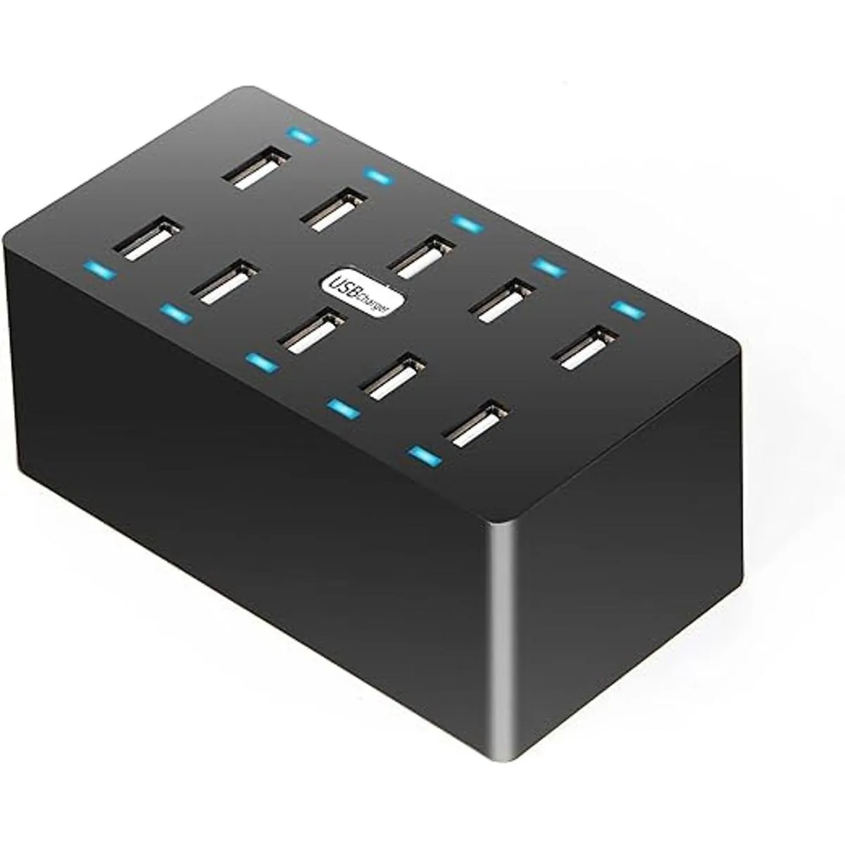 Cargador de pared de 10 puertos, cargador rápido USB de escritorio de tamaño familiar de 50 W y 10 puertos, estación de carga múltiple, compatible con teléfonos inteligentes y otros dispositivos de carga USB