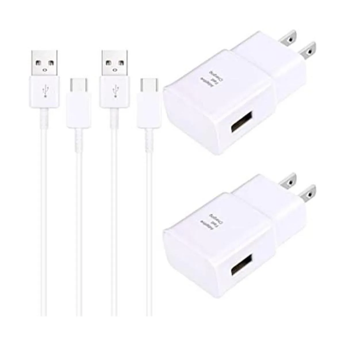 El paquete incluye: 2 cargadores de pared rápidos, 2 cables de carga tipo C de 3.9 ft