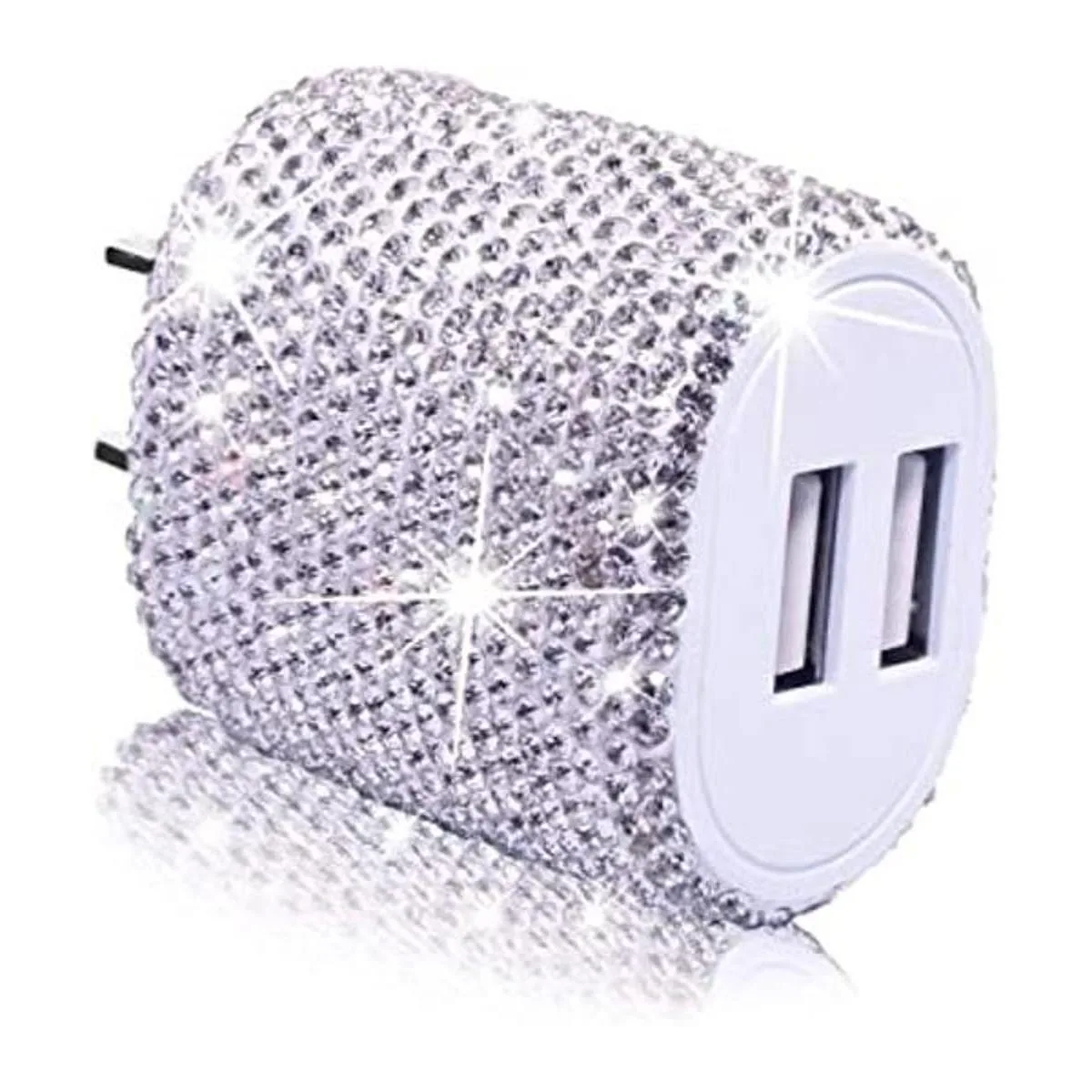Cargador de pared USB Bling de 5 V2.4 A 24 W, cargador rápido de doble puerto, adaptador de bloque de teléfono celular, blanco para iPhone, Android, Samsung, tableta, etc
