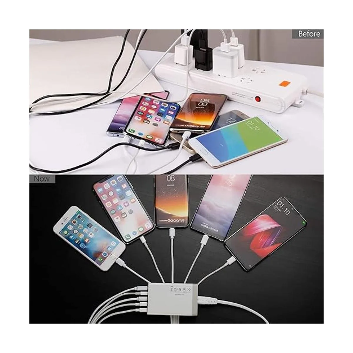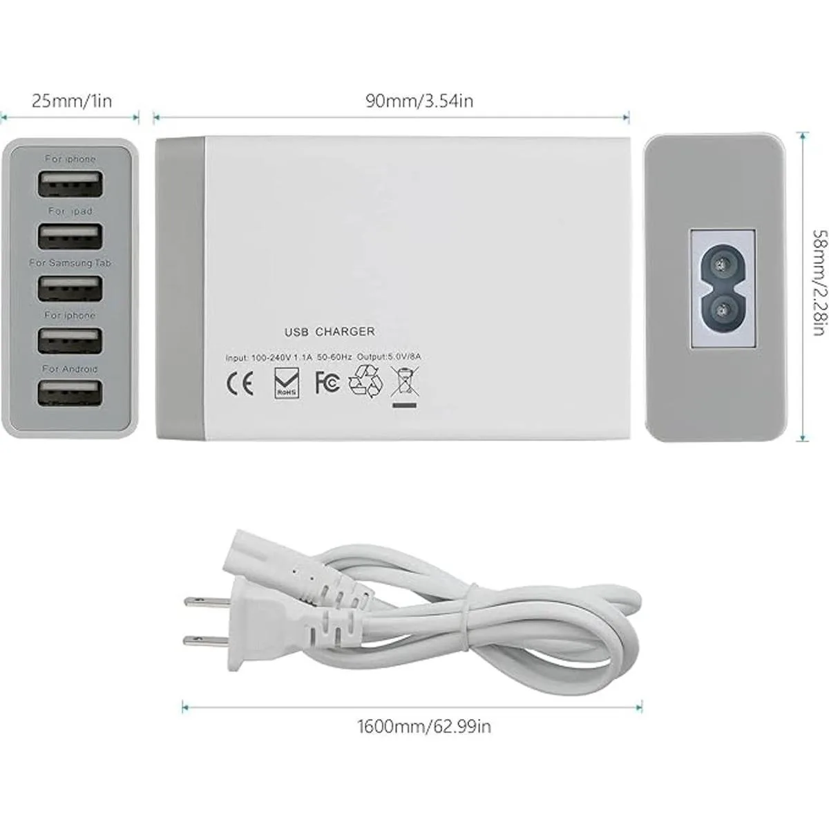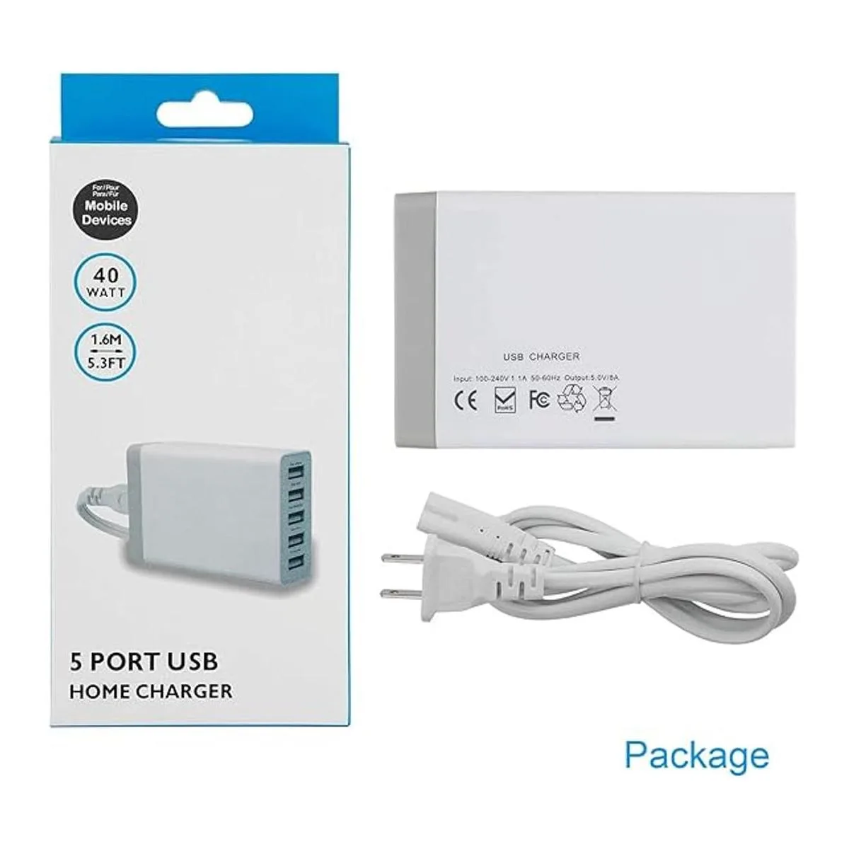 Cargador de pared USB con 5 puertos para múltiples dispositivos, cargador de pared USB múltiple de 40 W 8 A compatible con tableta, teléfono, productos de dispositivos celulares, teléfono Android y todos los dispositivos de puerto USB
