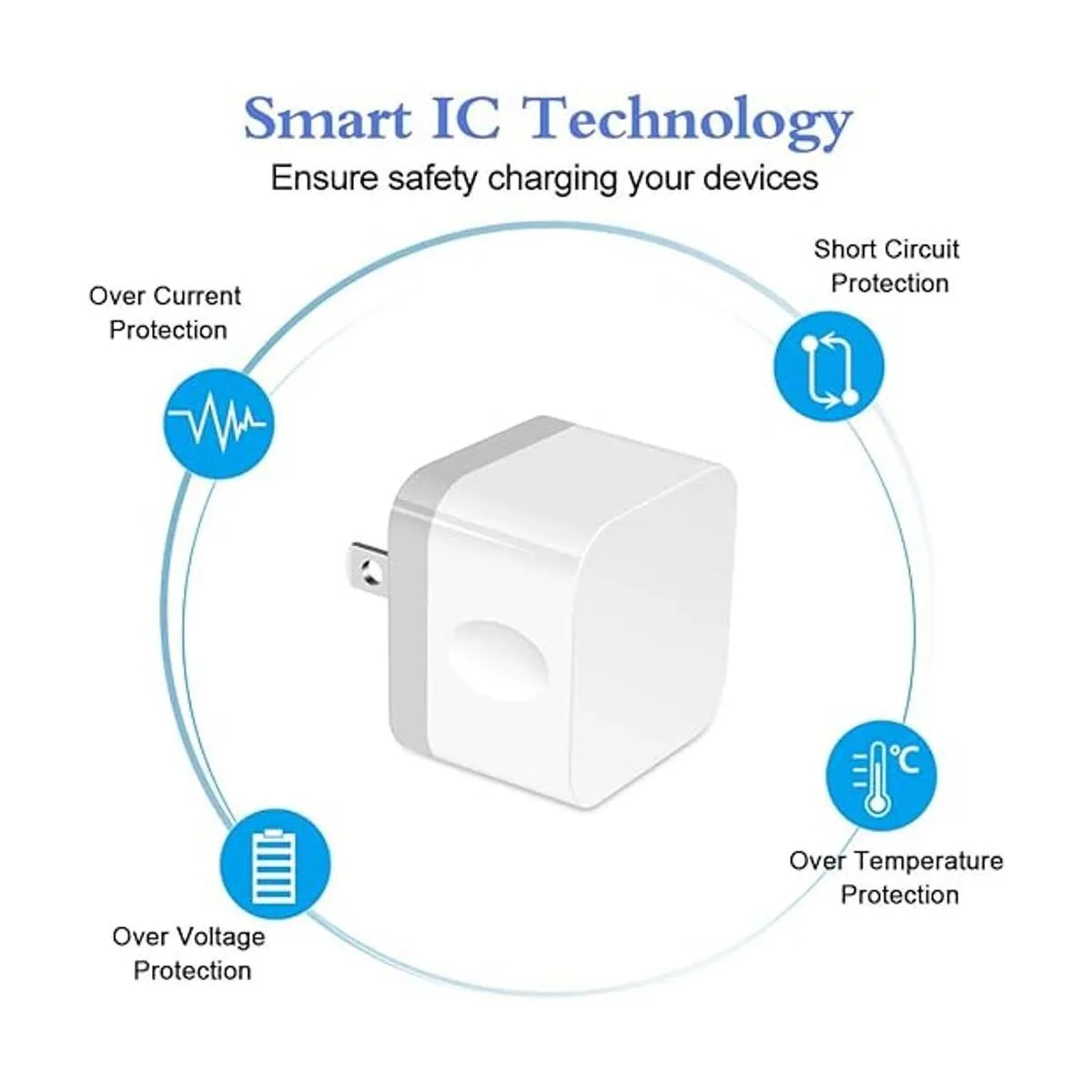 Seguro y fiable: construido con materiales de policarbonato ignífugos de alta calidad contra el sobrecalentamiento y la tecnología Smart IC para maximizar la eficiencia de carga, cargador de pared de 2 puertos con estrictas pruebas de control que garantizan una carga segura y ofrece un gran sistema de protección contra cortocircuitos, sobrecalentamiento, sobrecorriente y sobrecarga