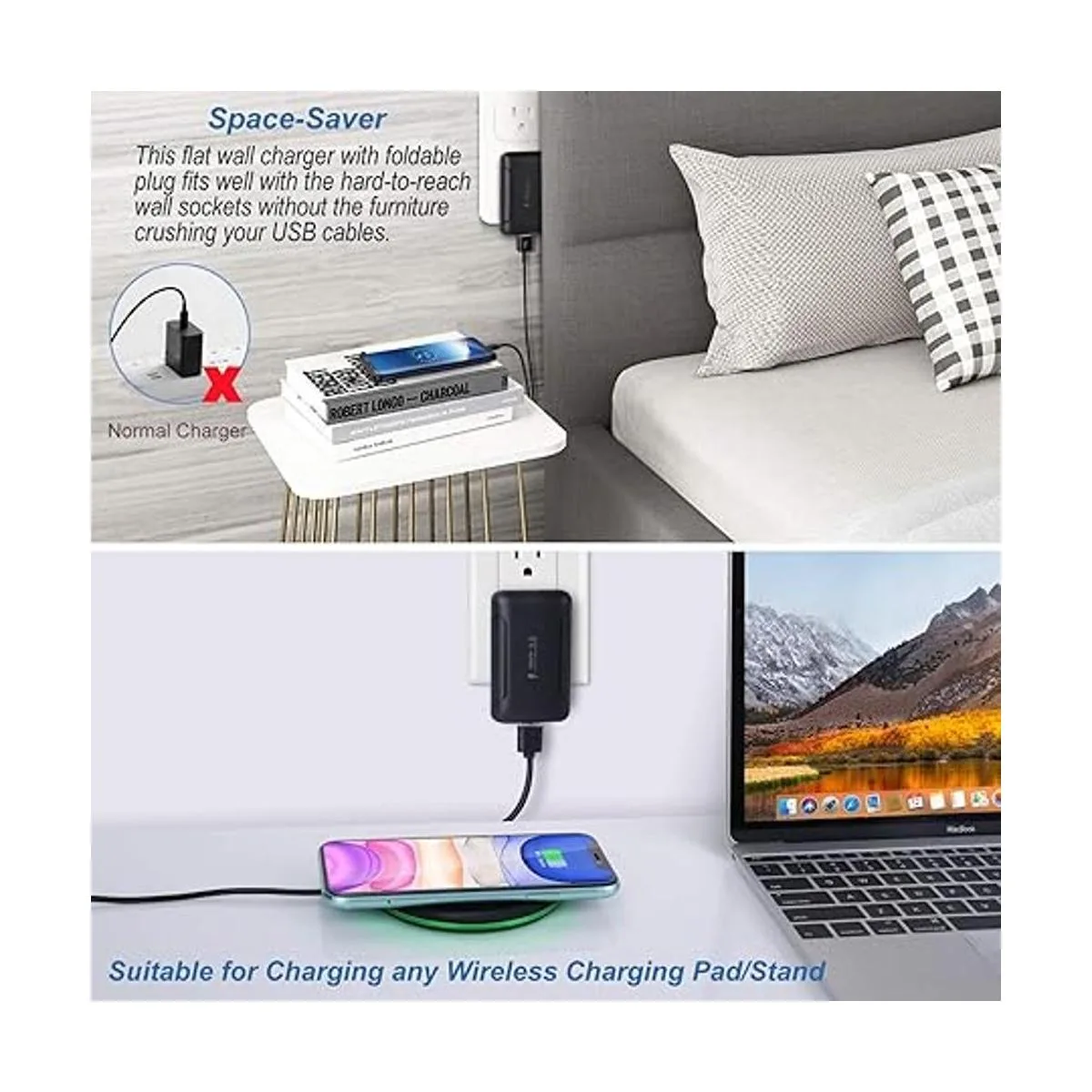 Ahorro de espacio: el increíblemente delgado cargador de pared USB es perfecto para su uso en espacios pequeños. Solo 0.43 pulgadas de grosor, el cargador con enchufe plegable puede caber fácilmente en espacios reducidos entre sofás, cabeceras u otros muebles y paredes, protegiendo tus cables de carga de patadas o daños, manteniendo tu hogar agradable y ordenado.