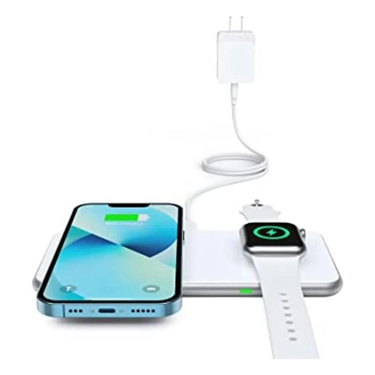 Cargador inalámbrico 2 en 1, almohadilla de carga inalámbrica dual de 15 W para iPhone 1414 Pro1313 Pro1212 Pro11X8, Samsung S22S21S20Note 20, Airpods 32Pro, iWatch 876SE 5432 con adaptador QC 3.0