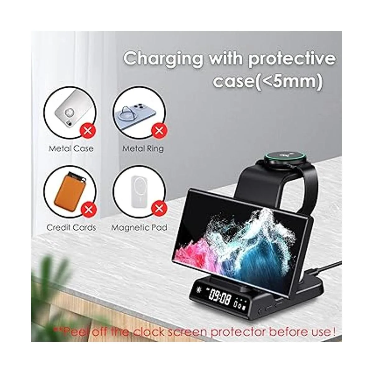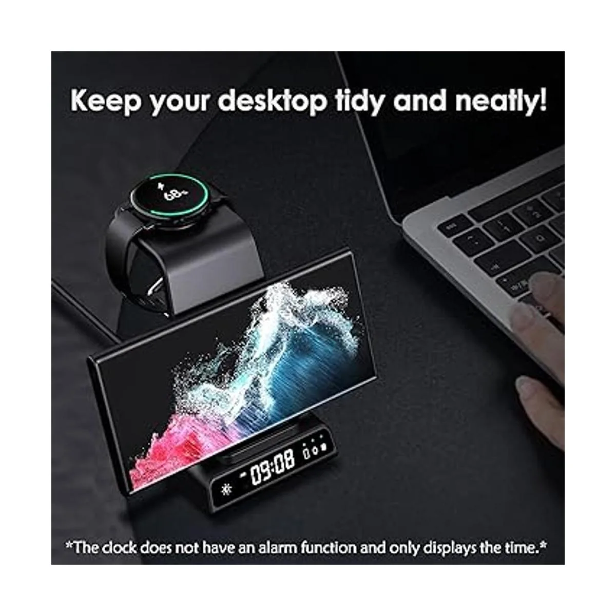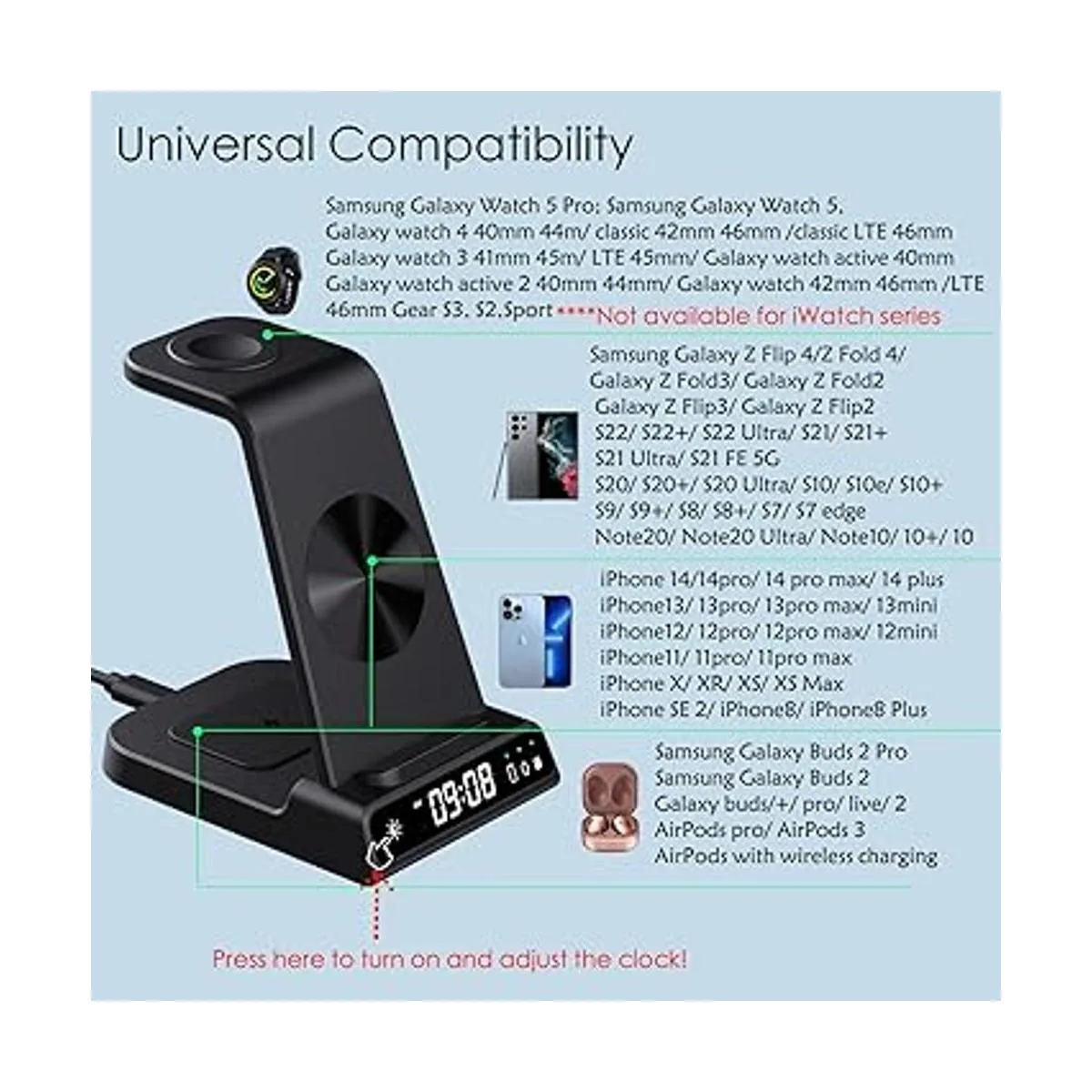 Cargador inalámbrico con reloj digital: cargador inalámbrico multifuncional Samsung súper genial. Combina un reloj digital con 3 niveles de brillo y 12/24 horas. Función de carga inalámbrica, especialmente diseñada para cargar dispositivos Samsung. Base de carga inalámbrica, solo para teléfonos con capacidades de carga inalámbrica. Comprueba si tu teléfono soporta carga inalámbrica antes de comprar.