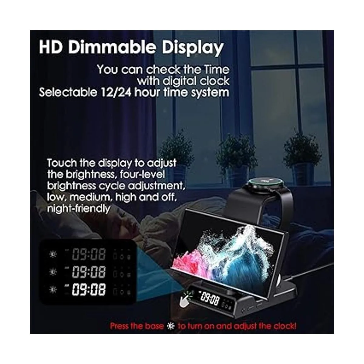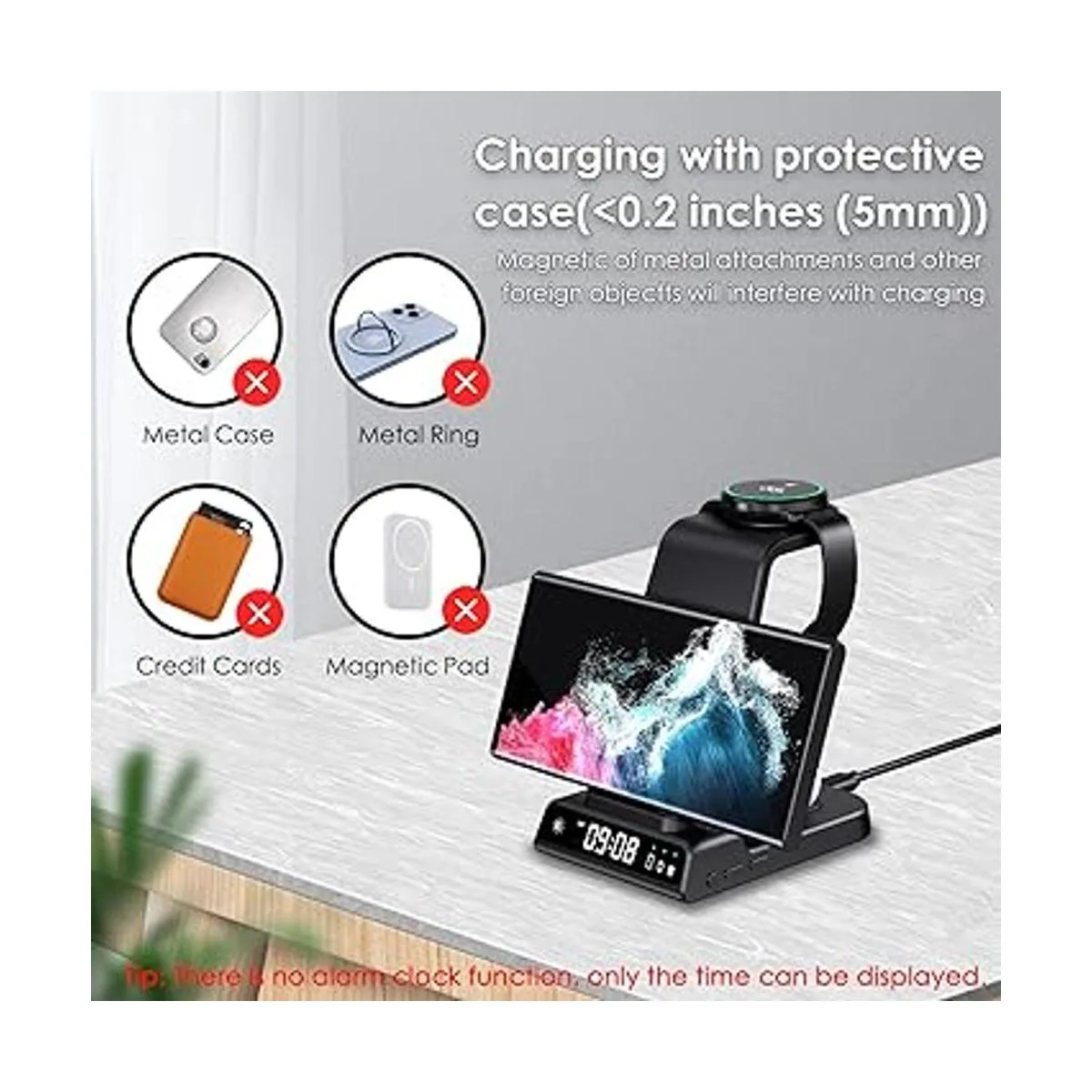 Cargador inalámbrico 3 en 1 mejorado: este cargador Samsung mejorado viene con una función de reloj digital que no se encuentra en otras estaciones de carga antiguas. El reloj se puede seleccionar en formato de 12/24 horas según las preferencias personales. La luz LED en la base del cargador también proporcionará una indicación clara de la carga, sabrás de un vistazo si tus auriculares/teléfono se están cargando o no. Si encuentras la pantalla demasiado brillante, la pantalla se puede ajustar a cuatro niveles de brillo: bajo, medio, alto y apagado.