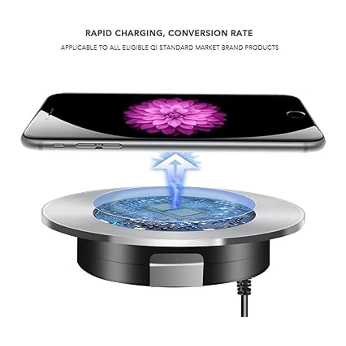 Diseño elegante y multiescenario: la carcasa de metal proporciona una buena disipación del calor, integrada en cualquier superficie no interfiere con los diseños interiores, se integra perfectamente y maravillosamente en el diseño de tus muebles, dejando el acceso a tomas de corriente, así que olvídate de los cables y adaptadores, son lo suficientemente elegantes como para adaptarse a nuestra decoración del hogar, ahora puedes llevar la comodidad de carga inalámbrica a tu vestíbulo, hotel, club nocturno, oficina y casi cualquier sala de espera o zona de descanso donde tu los invitados se reúnen.