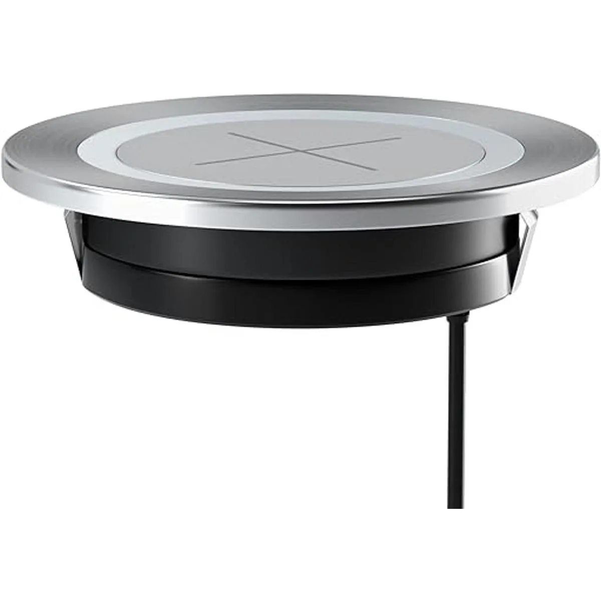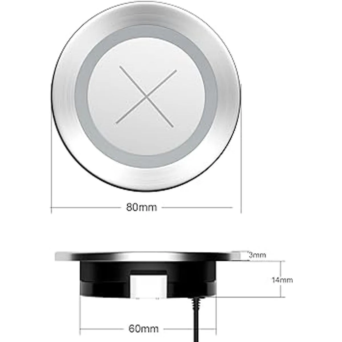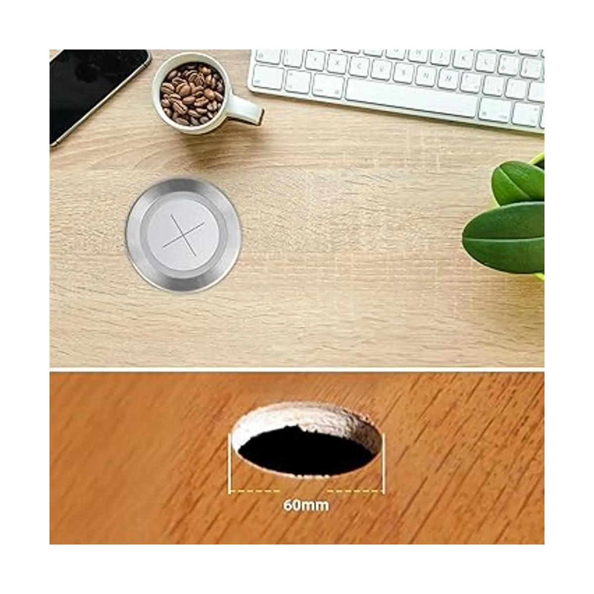 Fácil de instalar: con un diámetro de 2.3 pulgadas, el cargador cabe en muchos agujeros de ojales de tamaño estándar, lo que significa que tu escritorio ya cuenta con el lugar perfecto para un cargador inalámbrico integrado. Si quieres añadir un cargador inalámbrico integrado a un mueble propio, todo lo que necesitas es un taladro, una sierra perforadora y un poco de grasa de codo De hecho, pero cualquier sierra perforadora de 3 pulgadas servirá.