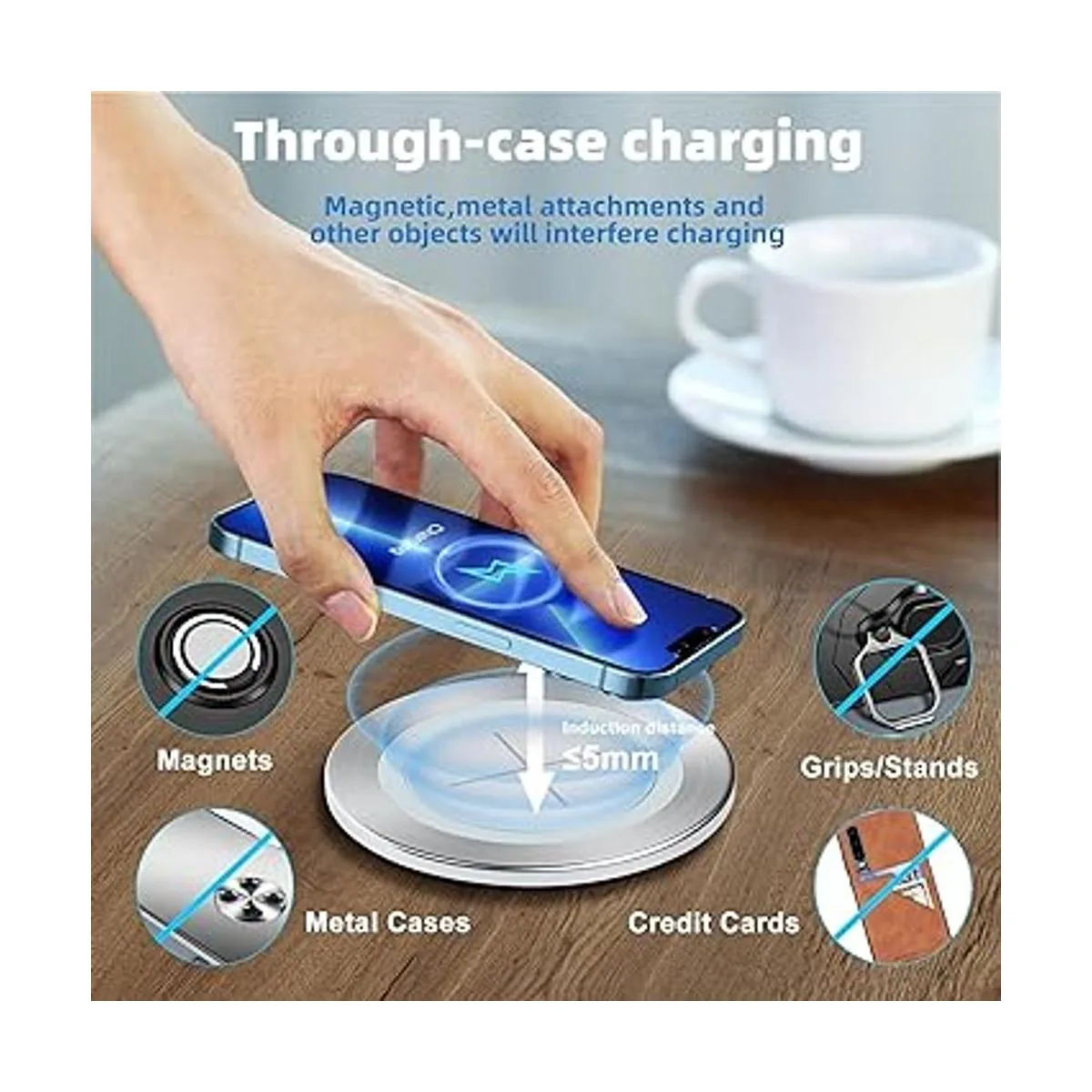 Cargador inalámbrico para teléfono celular, almohadilla de carga inalámbrica de escritorio, estaciones de carga de teléfono celular JE compatibles con iPhone 1414 Pro14 Mini14 Pro MaxSE 202213XR, Galaxy Series y todos los teléfonos habilitados plata