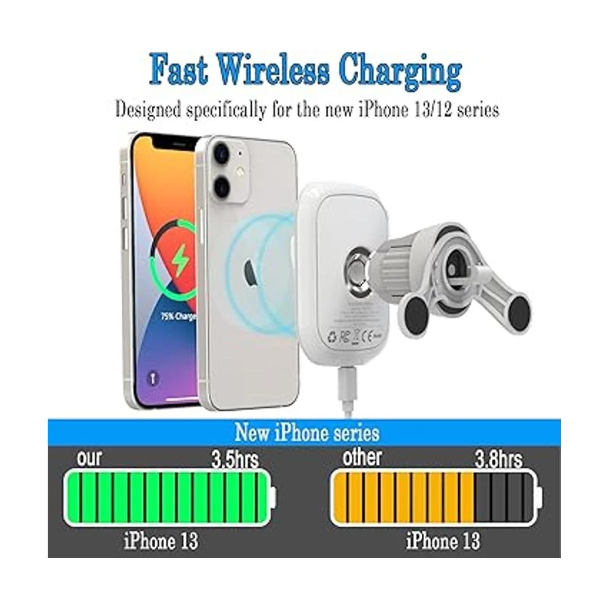 Cargador magnético inalámbrico para automóvil compatible con soporte de automóvil MagSafe, carga rápida de 15 W, ajuste de 360, soporte de ventilación de aire para iPhone 14 Series, iPhone 13 Series, iPhone 12 Series blanco