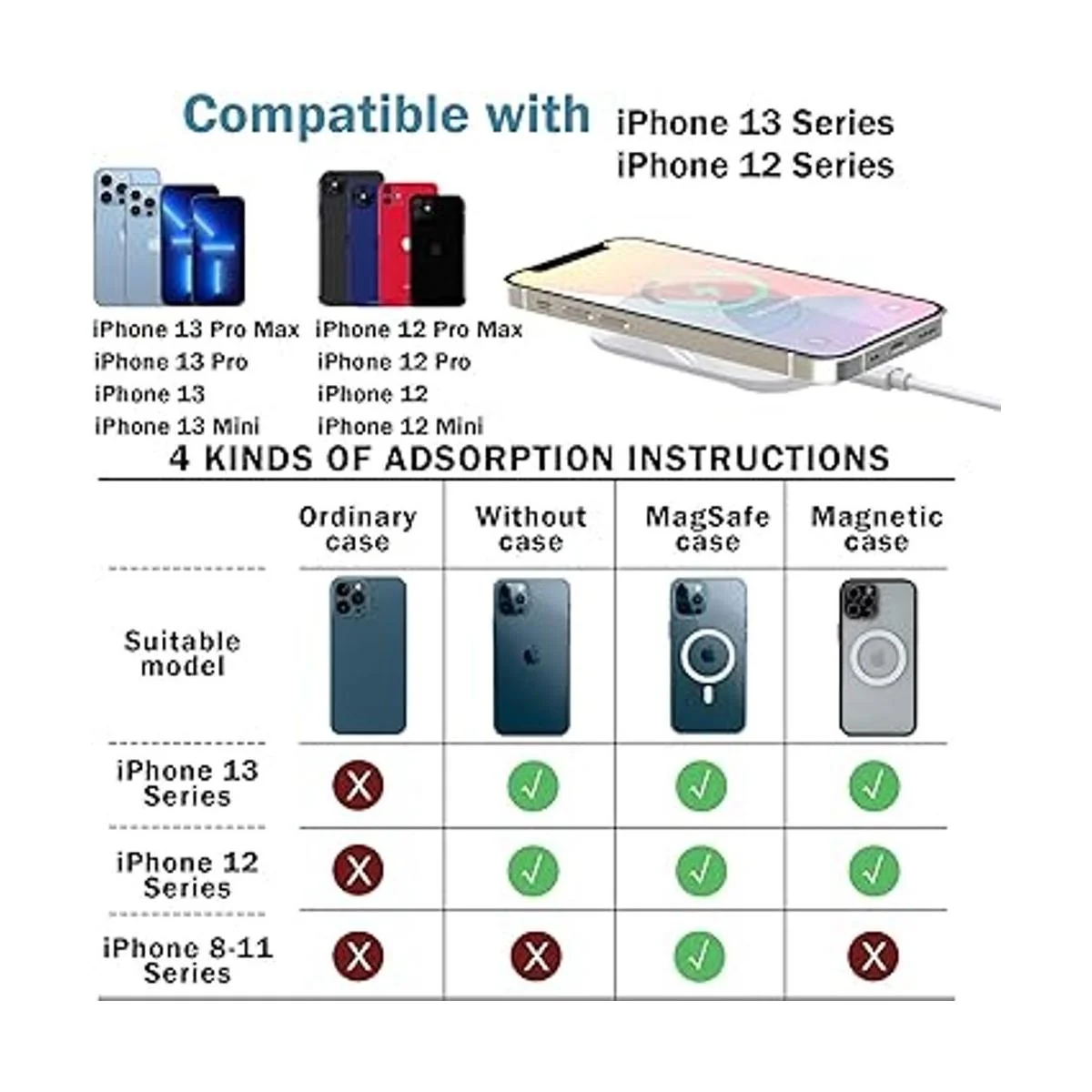 Especialmente diseñado para iPhone 14/13/12: este cargador inalámbrico para coche solo es adecuado para iPhone 14/mini/Pro/Pro Max, iPhone 13/mini/Pro Max, iPhone 12/Pro/Mini/Pro Max, y fundas oficiales MagSafe, comprueba el modelo antes de comprar.