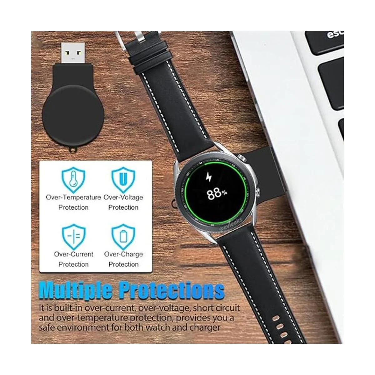 Múltiples protecciones: está integrada contra sobrecorriente, sobretensión, cortocircuito y sobretemperatura, te proporciona un ambiente seguro tanto para el reloj como para el cargador.