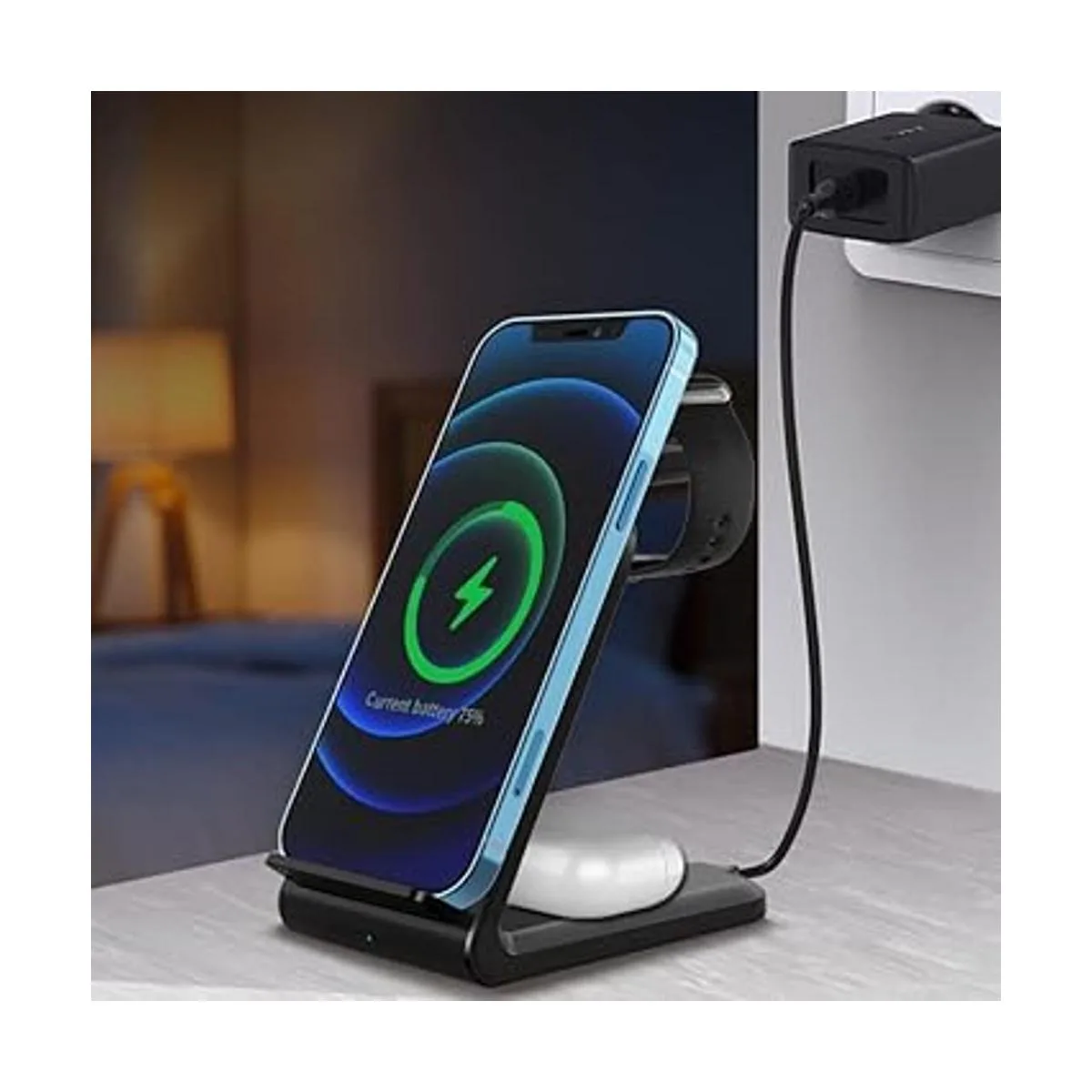 Cargador rápido inalámbrico 3 en 1, certificación Qi, estación de carga inalámbrica inteligente para reloj móvil, Airpods con conector de pared