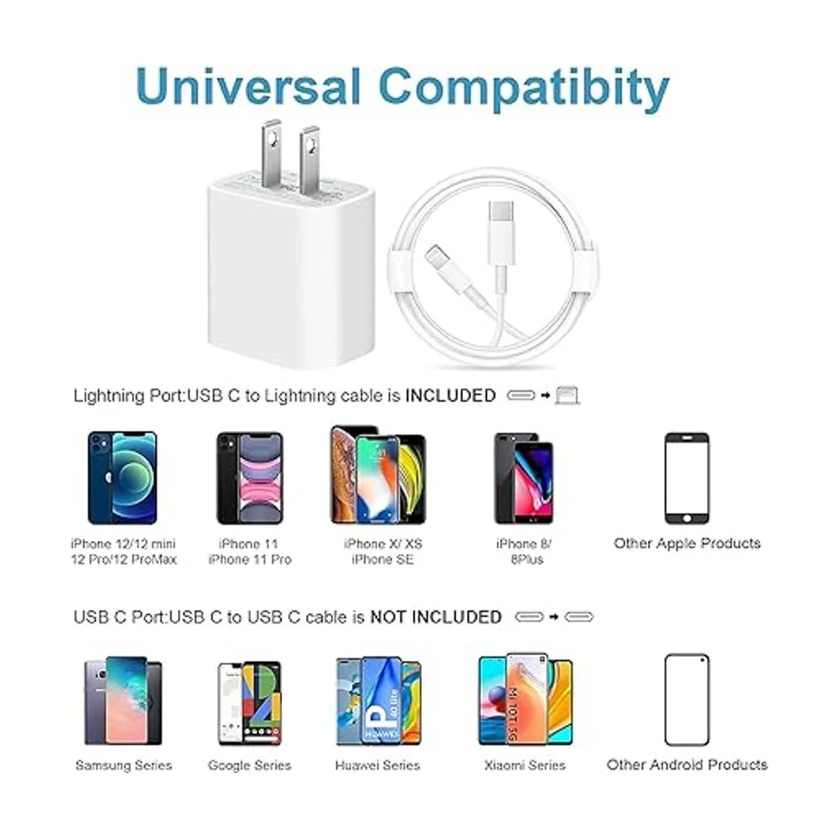 Cargador rápido para iPhone 14 13 12 11 certificado Apple MFi Cargador de pared de alimentación PD tipo C de 20 W con cable de carga de 6 pies compatible con iPhone 1414 Max14 Pro1313 Pro Max1212 Pro12 Pro Max1111 Pro iPad