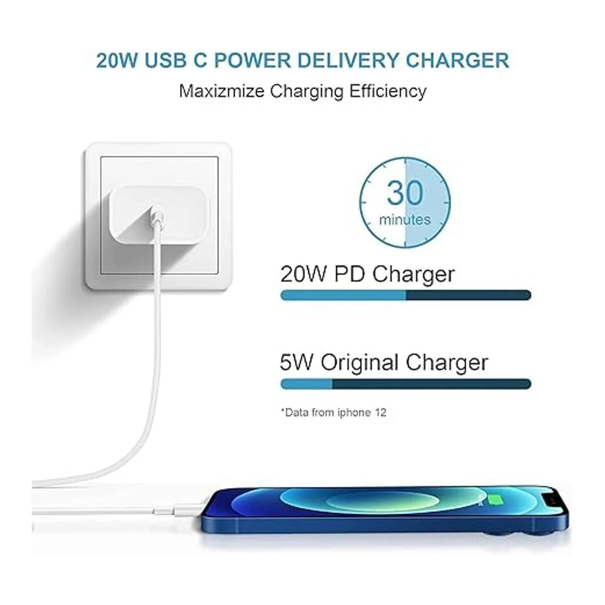 Cargador rápido Romitaz PD 3.0 para iPhone: cargador rápido para iPhone equipado con enchufe de pared PD 3.0 USB tipo C de 20 W, puerto USB C PD 3.0 de carga rápida proporciona una potencia de salida máxima de 20 W, carga tu dispositivo hasta 3 veces más rápido que el cargador original de 5 W, carga tu iPhone 12 hasta un 50 en solo 30 minutos, ahorrando más de 1.5 horas para ti.