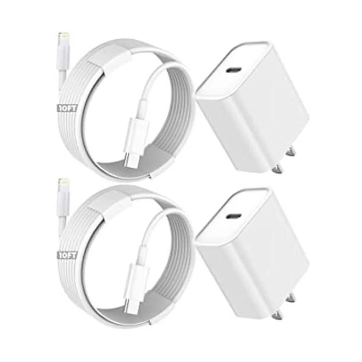 Lo que obtienes: 2 cargadores rápidos para iPhone de 20 W y 2 cargadores de iPhone de 10 pies. No dudes en ponerte en contacto con nosotros. Nuestro equipo de servicio te proporcionará una solución satisfactoria en 24 horas.