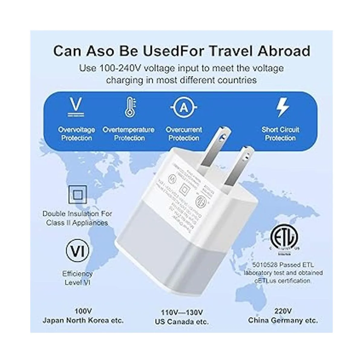 Protección de seguridad : el bloque de carga rápida está construido con materiales de PC ignífugos de alta calidad contra sobrecalentamiento y tecnología inteligente a voltaje de distribución, certificado ETL, ROHS. La protección de carga múltiple mantiene tu dispositivo a salvo de sobrecalentamiento de sobrecorriente y cortocircuitos.