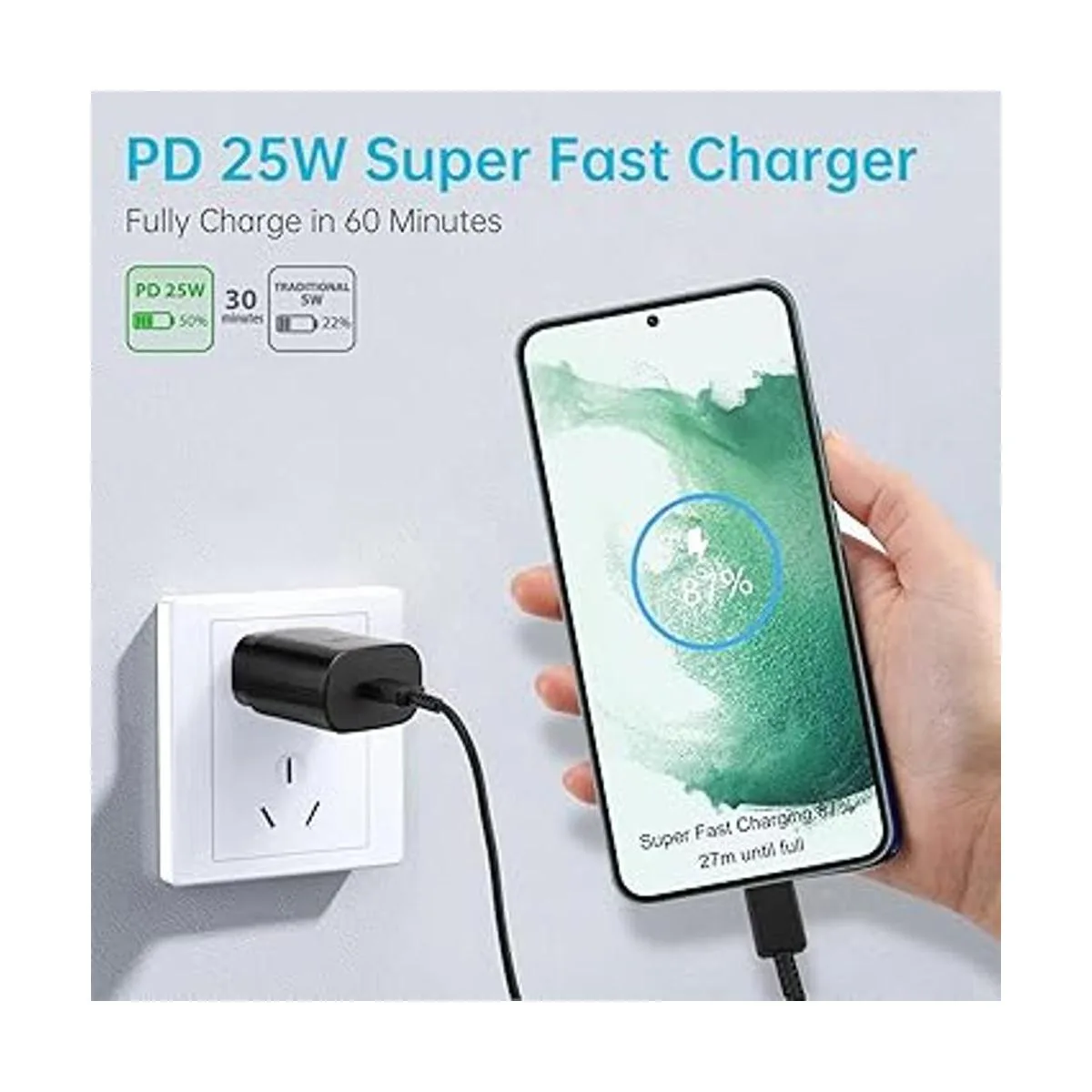 Cargador súper rápido tipo C, cargador de pared USB C de 25 W para Samsung Galaxy S22 UltraS22S22 Plus, S20 S21 Ultra Plus, Note 20 Note 10 Plus con cable de carga rápida tipo C