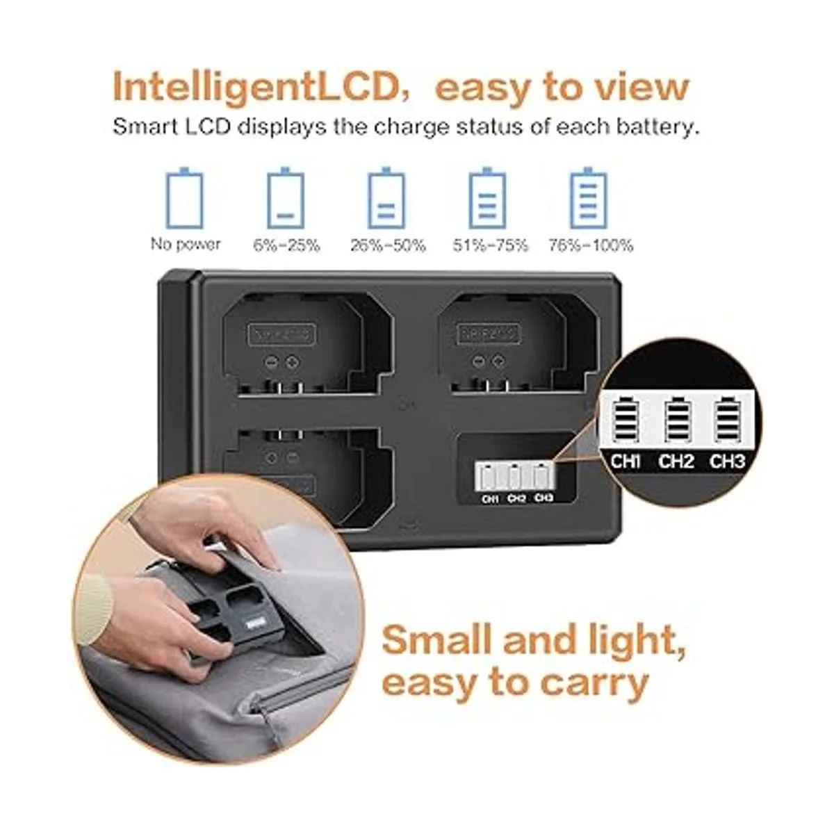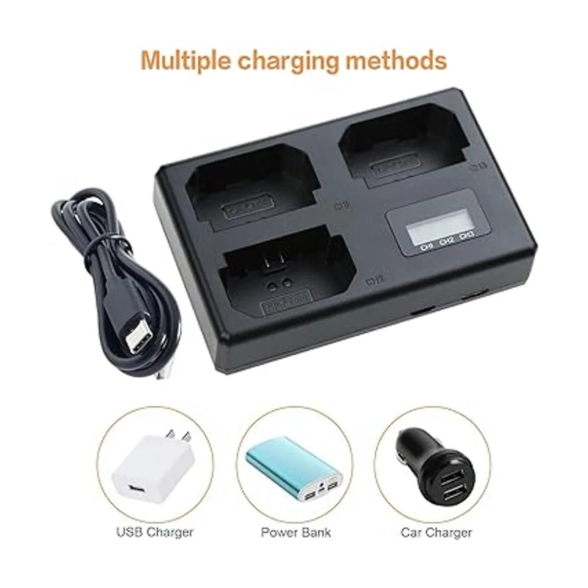 Compatibilidad: 100 compatible con Sony NPFZ100 Lion Battery. Compatible con la batería Sony Alpha A7III A7RIII, A7Siii, A7IV, A7R3, a6600, a7RIV, Alpha A9, Alpha 9R, A9R A9S cámaras; puede cargar 3 paquetes de baterías NPFZ100 al mismo tiempo, también puede cargar batería 1o 2; Nota: la batería no está incluida.