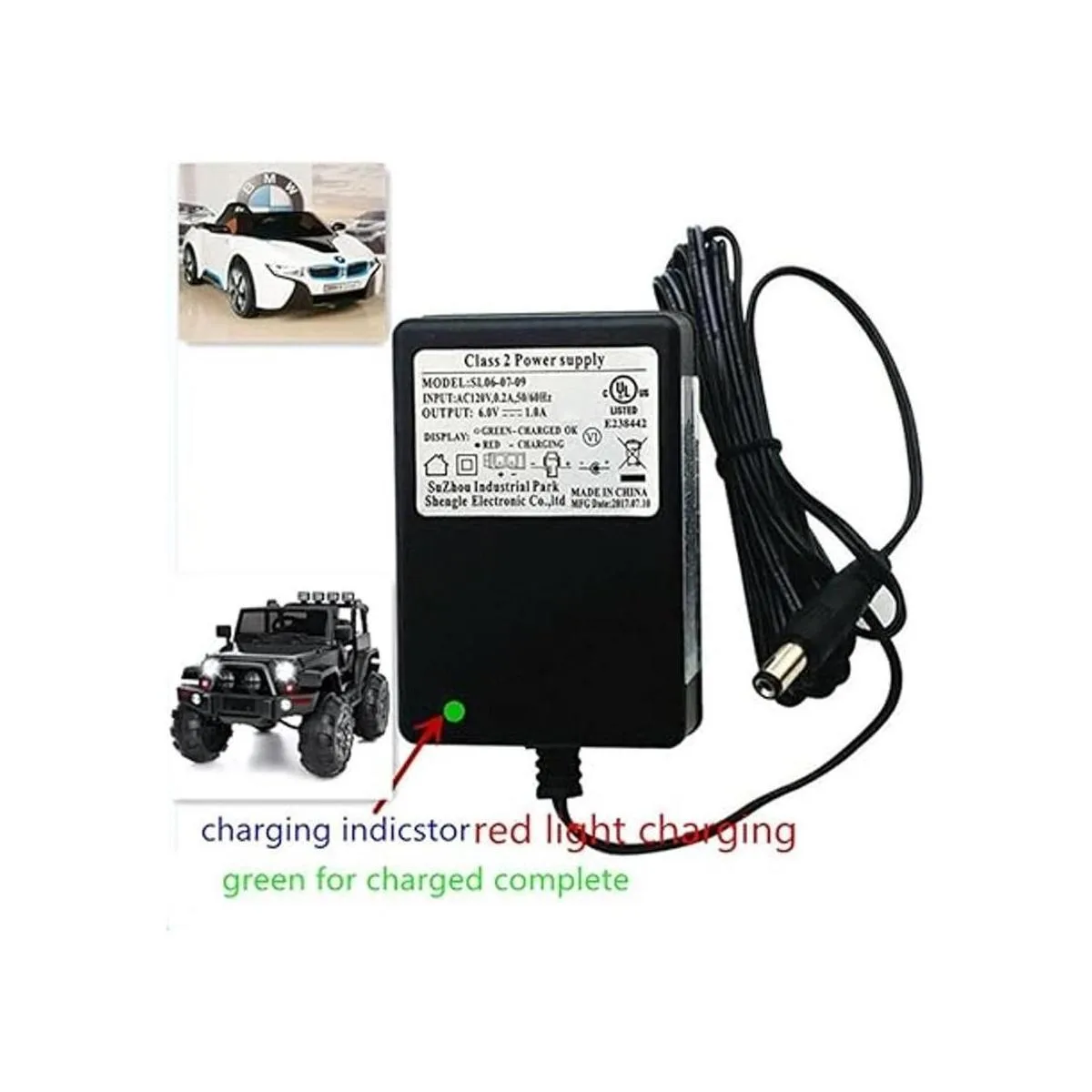 Cargador universal de 6 V para niños con indicador de carga. Aplicable a una variedad de juguetes eléctricos para bebés SL060709 6 V 1,0 A.