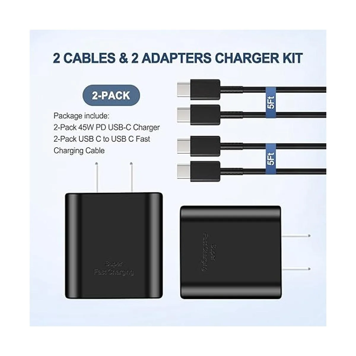 Cargador USB C de 45 W, paquete de 2 cargadores de pared de carga súper rápida para Samsung Galaxy S22 UltraS22S22 PlusNote 1010 Plus, S21Z Fold 4Z Flip 4, Galaxy Tab S8S8S8 Ultra con cable tipo C de 5 pies
