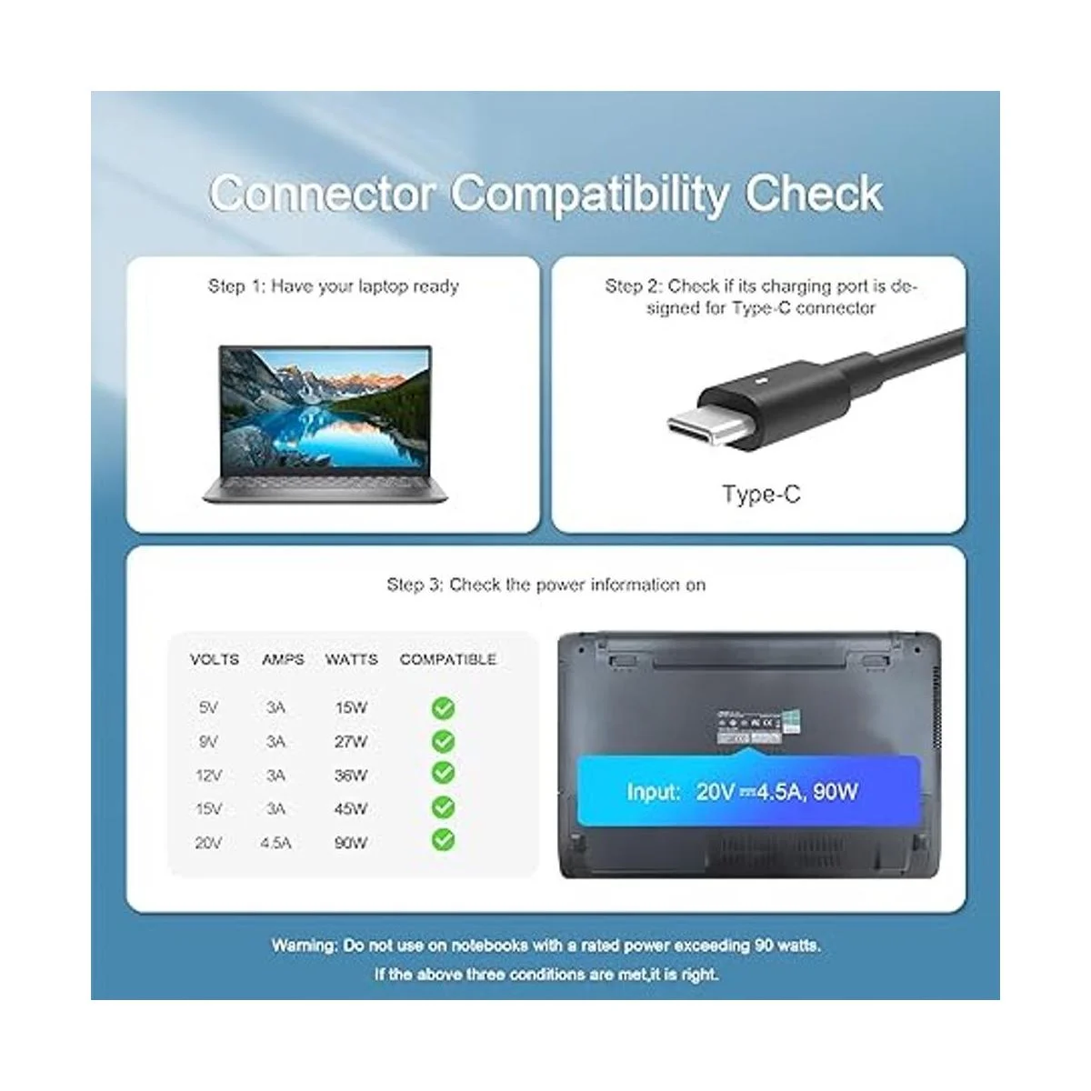 Salida máxima: 20 V, 4,5 A, 90 W compatible con 15 V, 3 A, 45 W, 65 W. Rango de voltaje de entrada: 100240 V