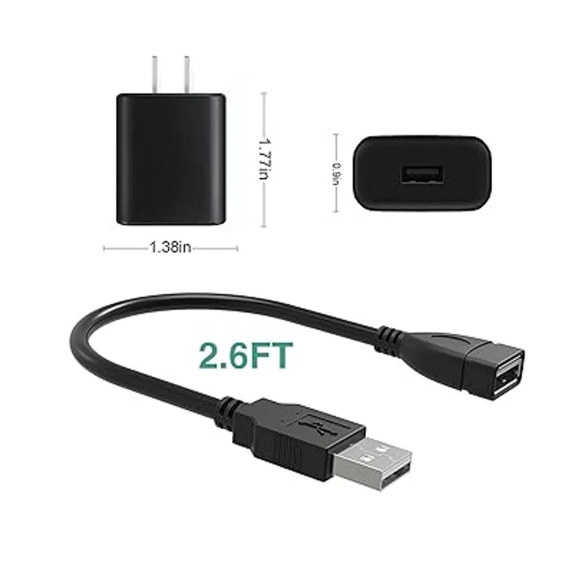 Obtendrás: 1 cargador de pared USB de 5 V2 A y 1 cable de extensión USB tipo A macho a hembra de 5 pies, así como 6 meses de garantía del producto.