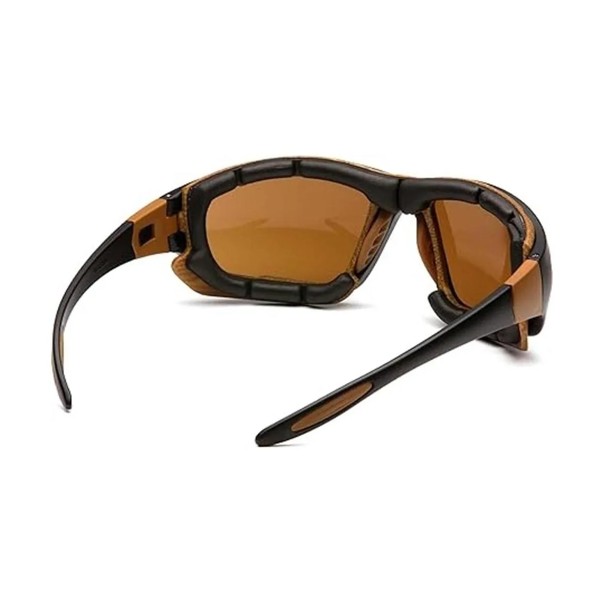 Carhartt Carthage Gafas de seguridad con carro de espuma ventilada, lente antivaho de bronce arenisca