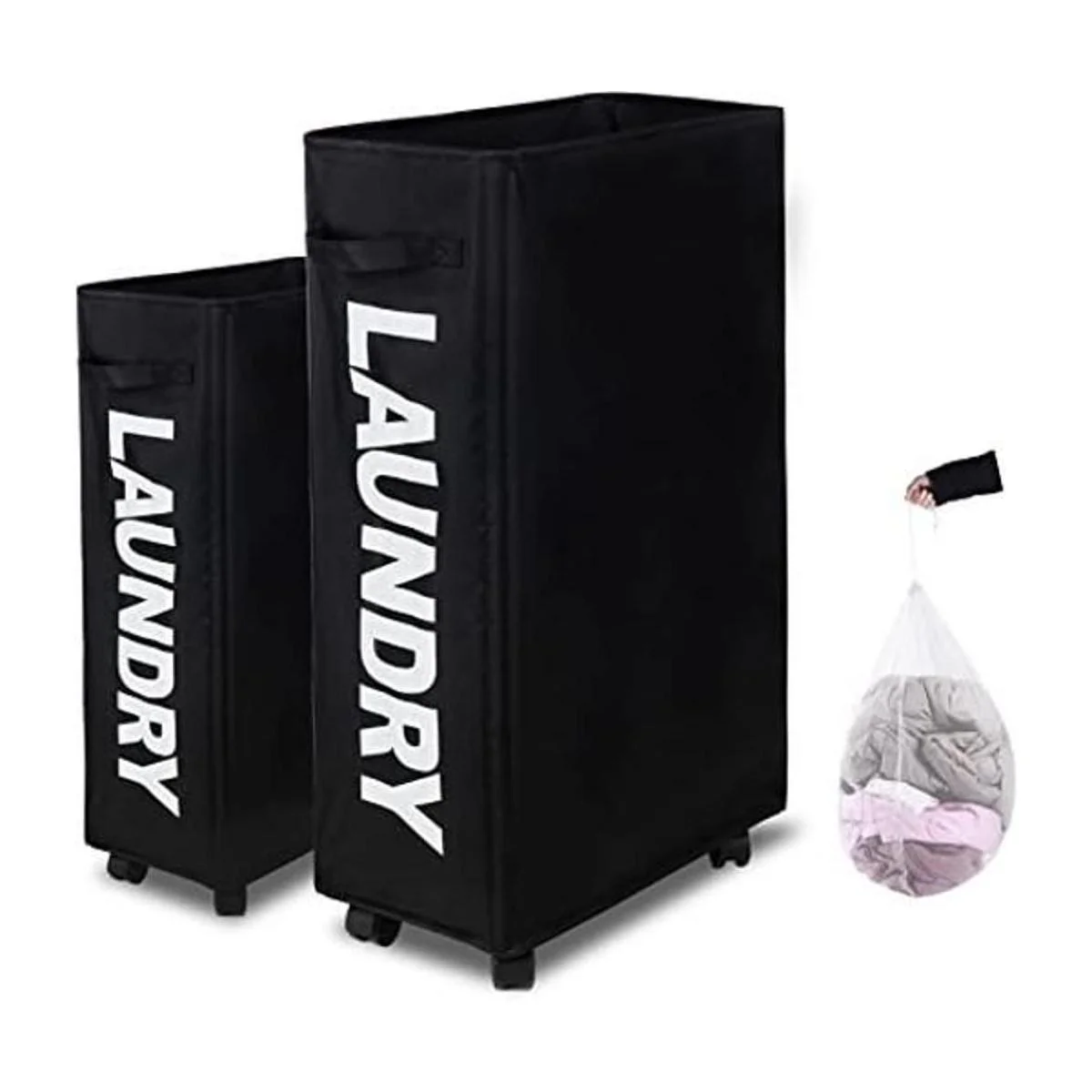 Caroeas Cesto de lavandería Slim Plus de 27.5 pulgadas, cesto de lavandería con ruedas, canasto de lavandería con bolsa de lavado extraíble, impermeable, cesto de tela para ropa sucia