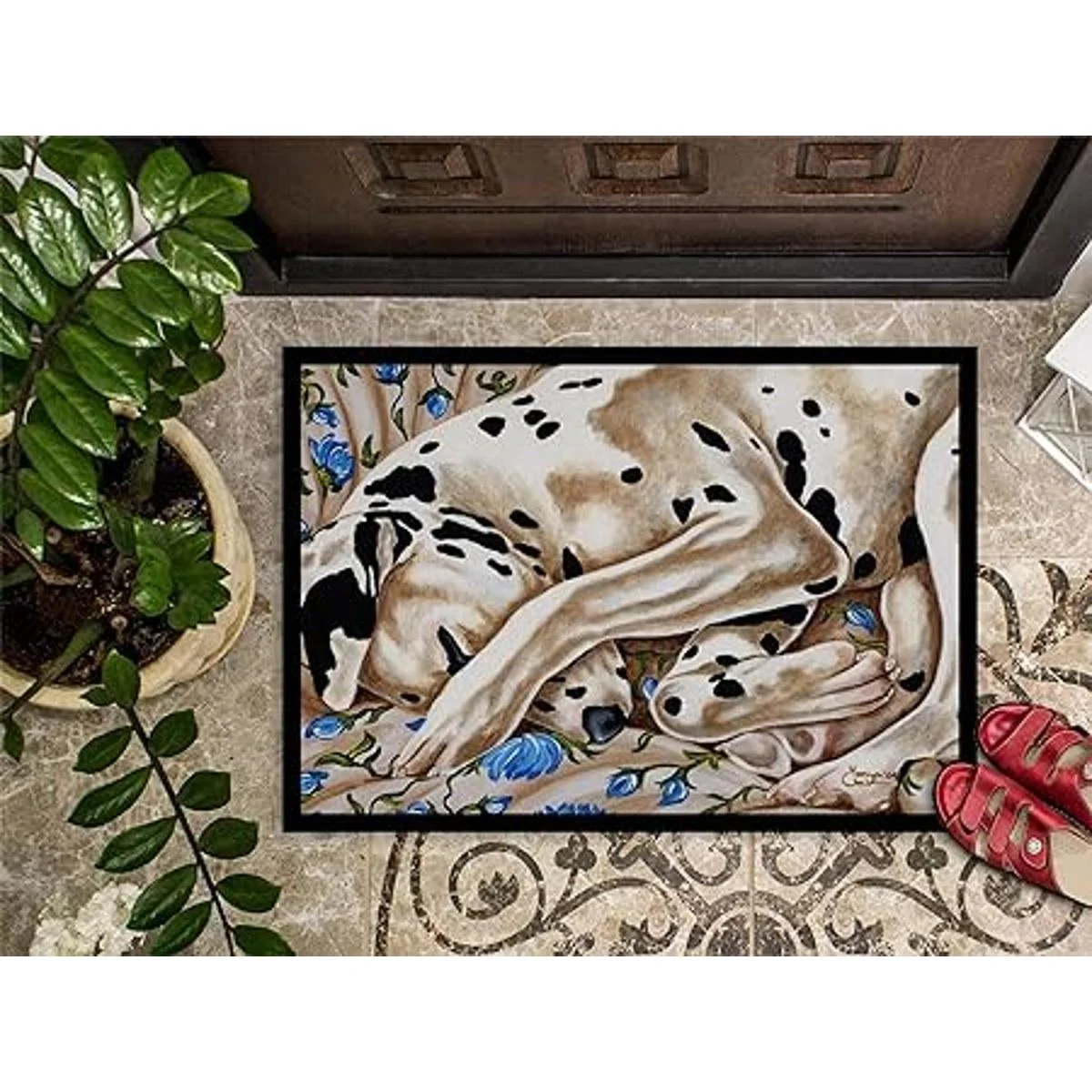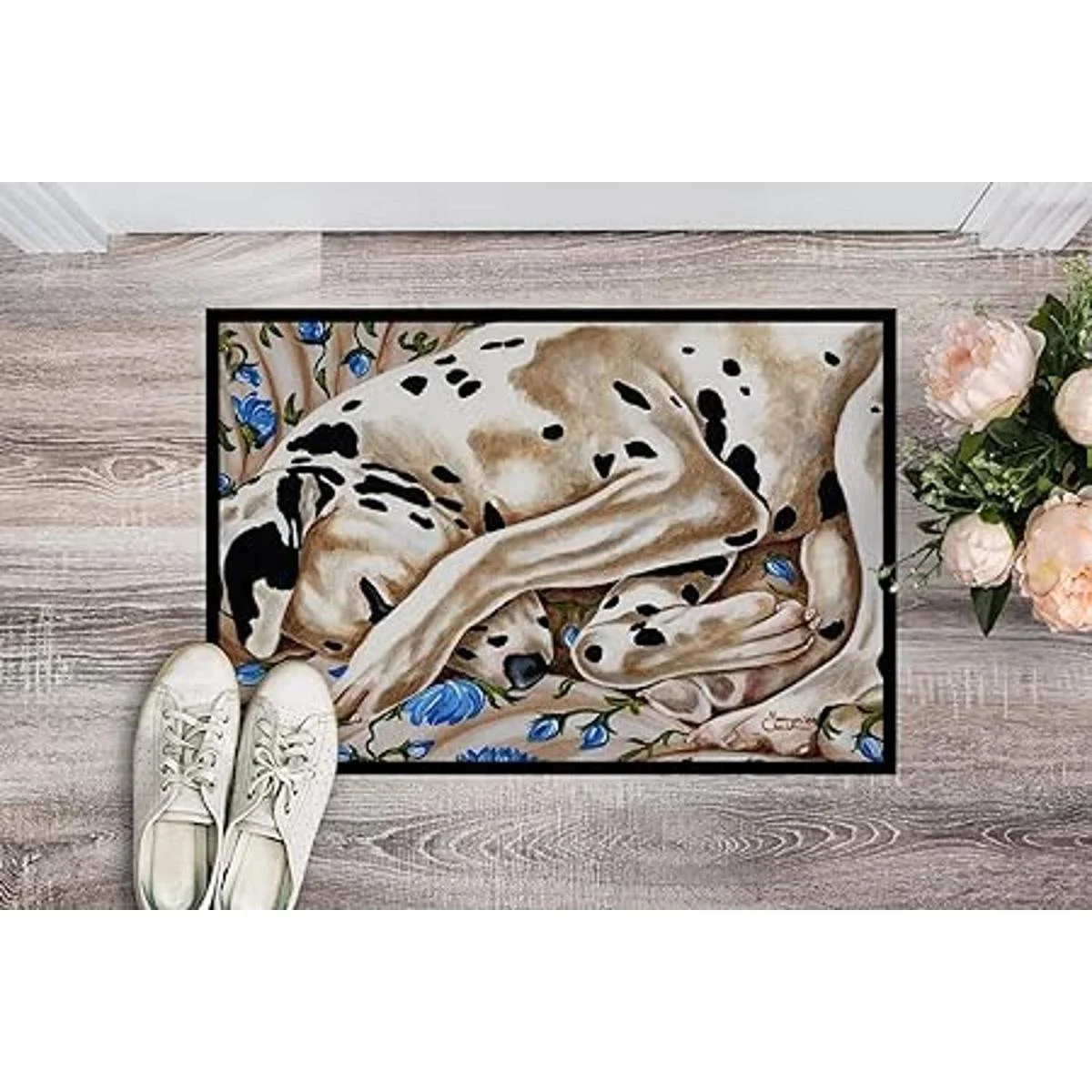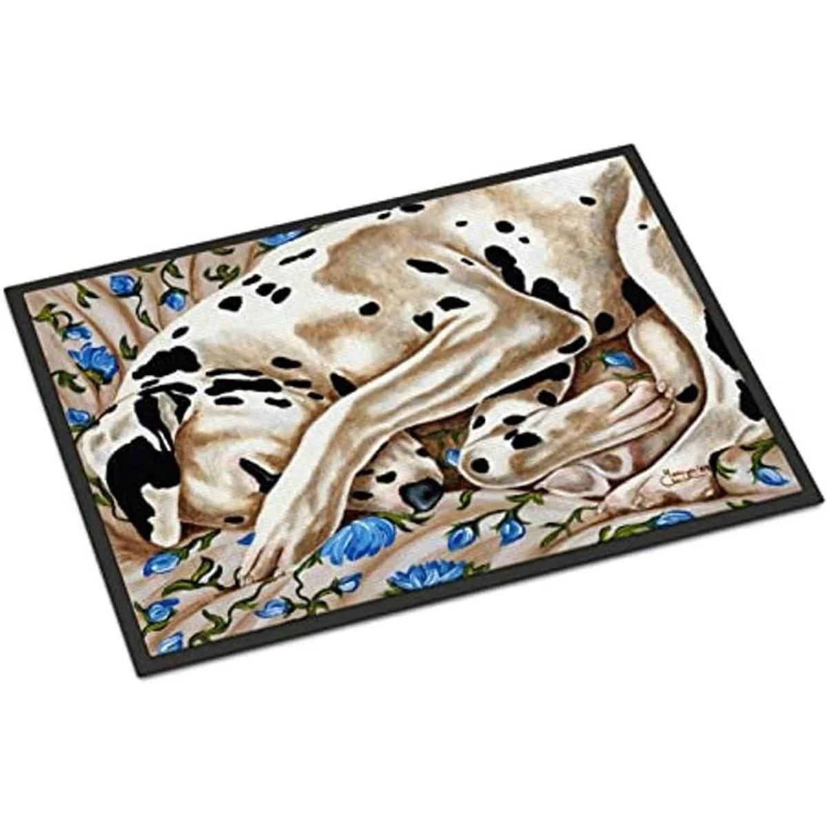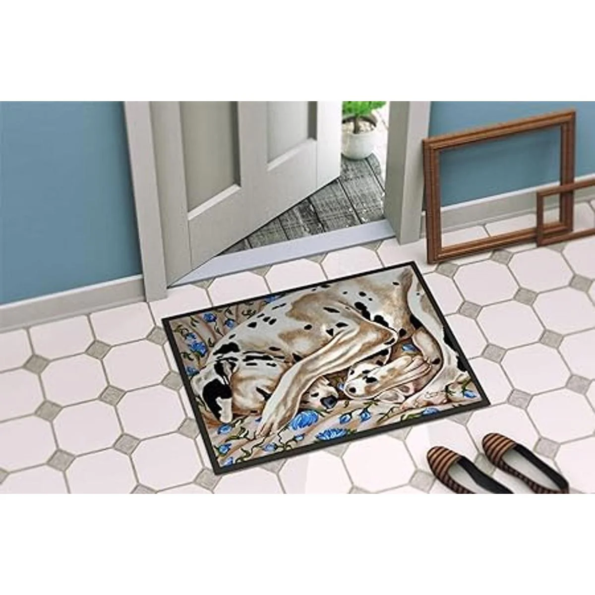 Carolines Treasures AMB1407MAT Tapete dálmata para cama de rosas, alfombra para interiores o exteriores, tapete de bienvenida de 18 x 27 pulgadas, 27 pulgadas de largo x 18 pulgadas de ancho, multicolor