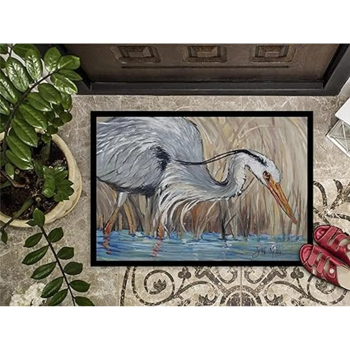 Caroline’s Treasures JMK1013JMAT Tapete para puerta de garza azul en las cañas, alfombra de interior o exterior de bienvenida de 24 x 36 pulgadas, 36 pulgadas de largo x 24 pulgadas de ancho, multicolor