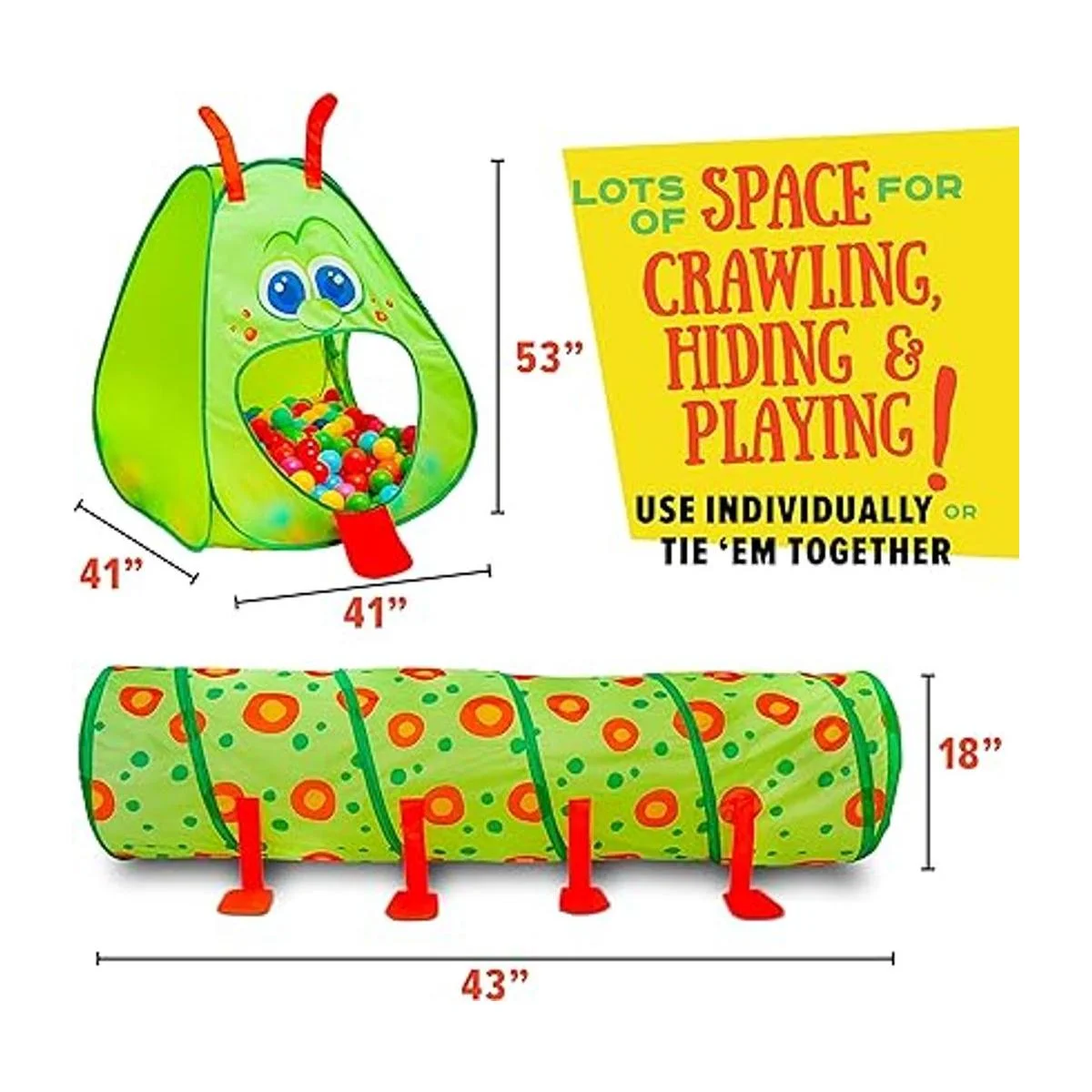 Divertido y versátil paquete de juego: cada juego viene con un divertido túnel de juego y tienda de campaña para niños a juego. Tu hijo puede jugar, gatear, explorar y fingir con amigos