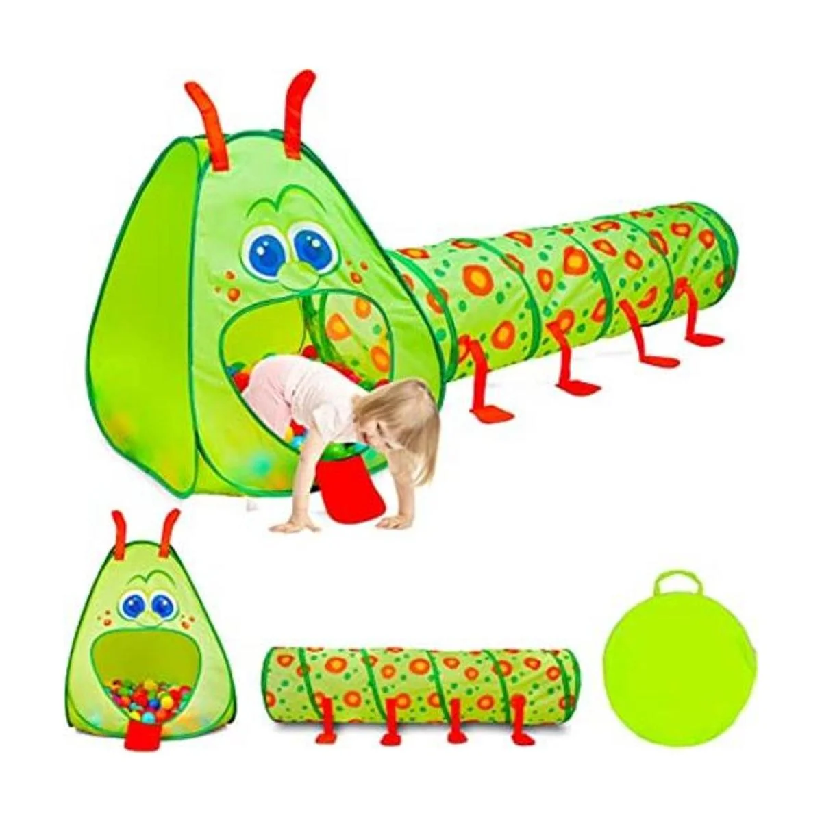 Carpa y túnel para niño, con forma de oruga juego de 2 piezas, estación para gatear y explorar, estimula el aprendizaje y el desarrollo muscular, uso exterior o interior, marca Kiddey