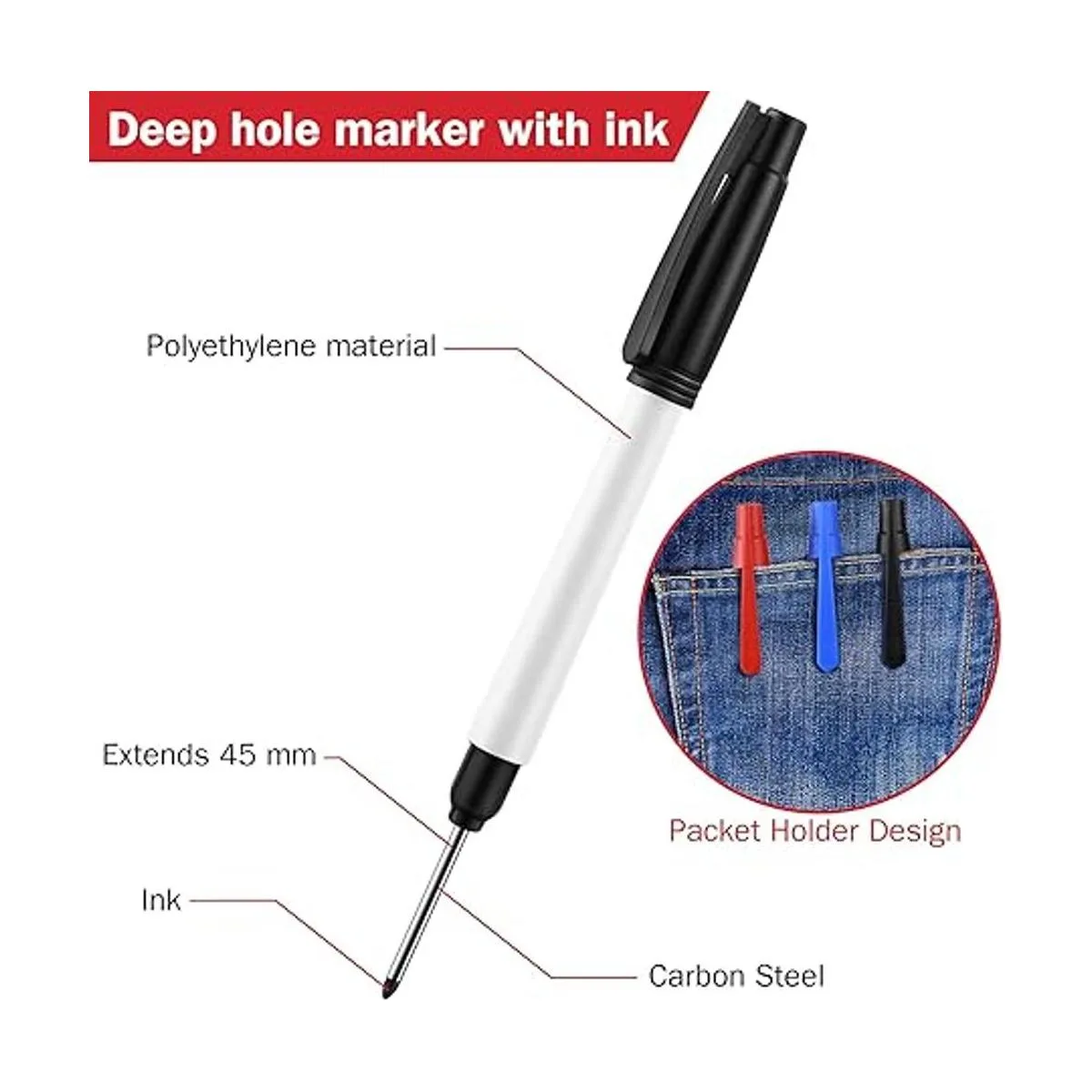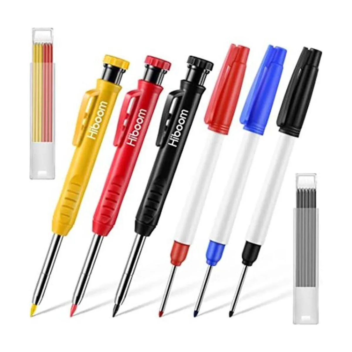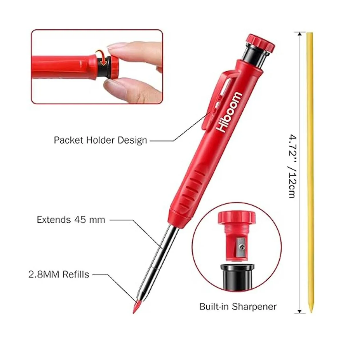 Carpenter Juego de herramientas de lápices para carpintería, 3 marcadores multiusos con agujero profundo, 3 sacapuntas mecánicos integrados con 12 repuestos, bolígrafos de punta larga para carpintería para construcción