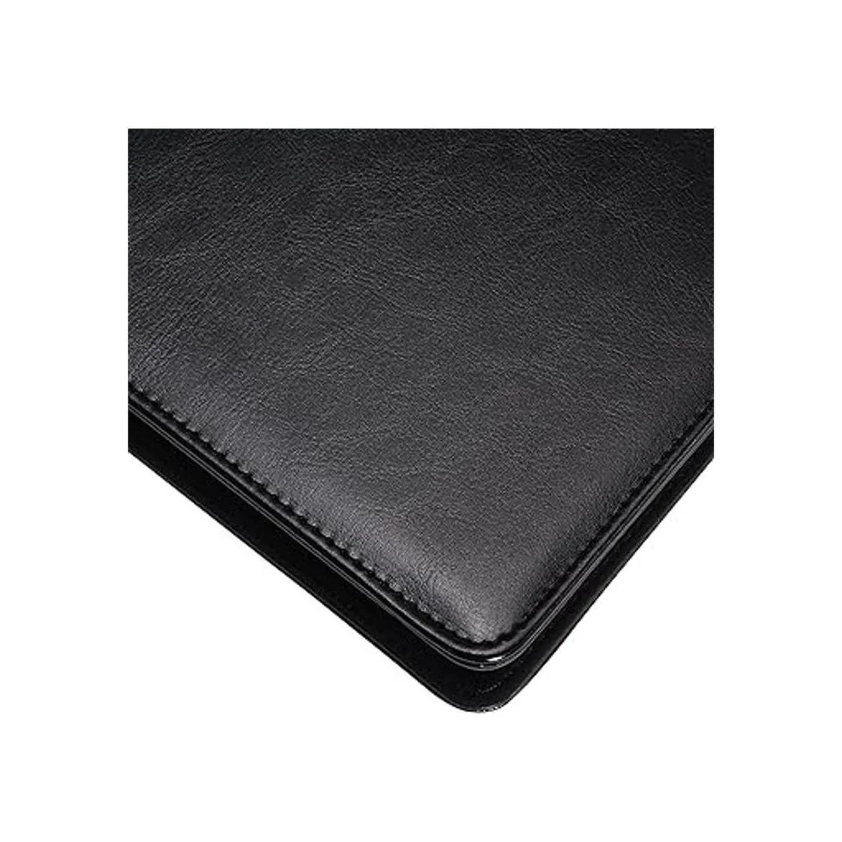Cómoda carpeta de cuero: la combinación de carpetas de tamaño A4 está hecha de piel sintética de alta calidad, con una superficie negra mate, resistente al agua y a la abrasión, aspecto clásico duradero, relleno de esponja, tacto suave, mango de maletín utensilios de exhibición no están incluidos en la unidad de venta, por ejemplo, bolígrafos, papel, calculadoras.