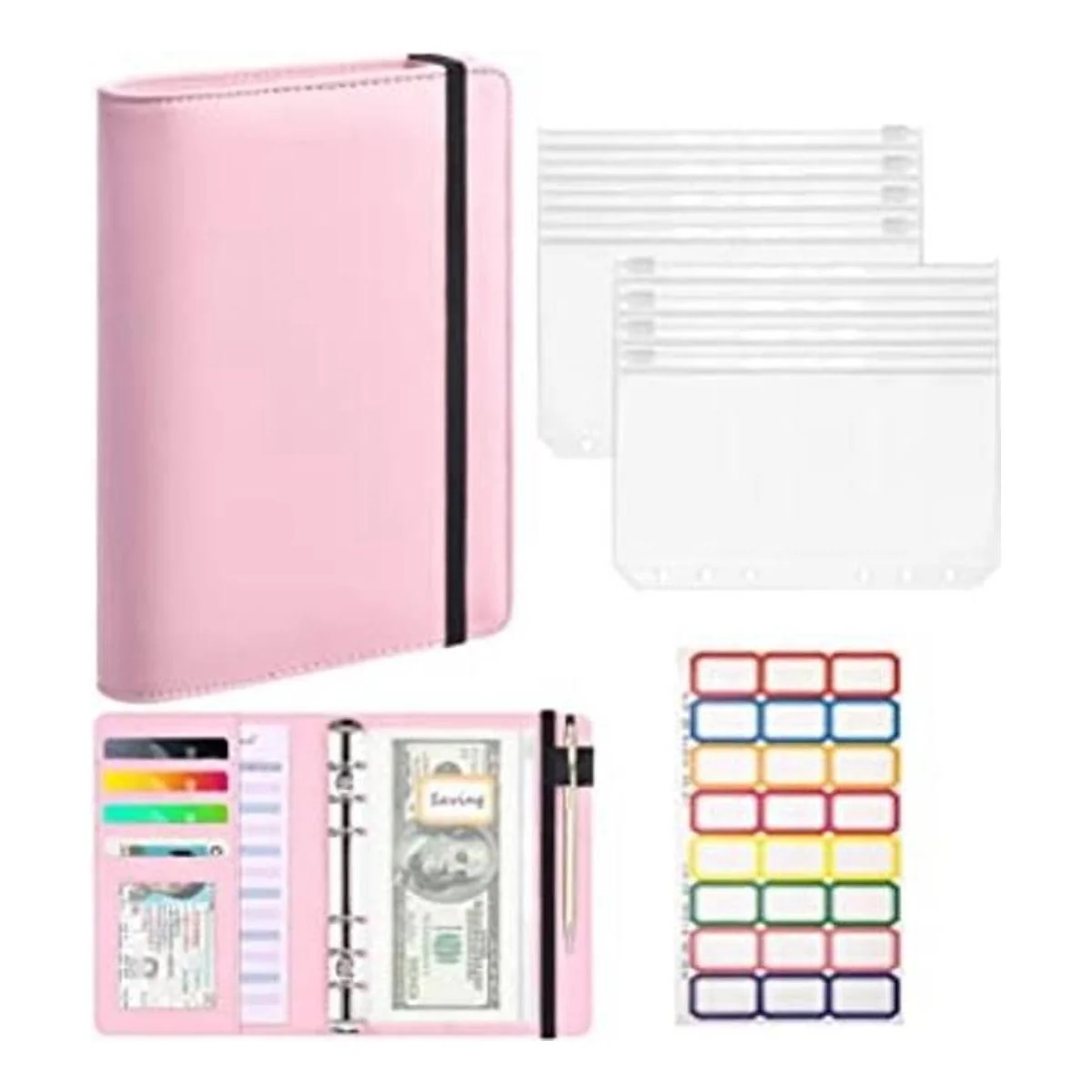 Kit de carpeta de presupuesto: recibirás una cubierta de carpeta de 6 anillas, 10 bolsillos de plástico transparente, 24 etiquetas de color para la familia, la escuela, la oficina, viajes para registrar la cantidad de dinero en efectivo dentro y fuera para cada categoría. Esta combinación también se puede utilizar para sellos, tarjetas, colecciones de monedas.