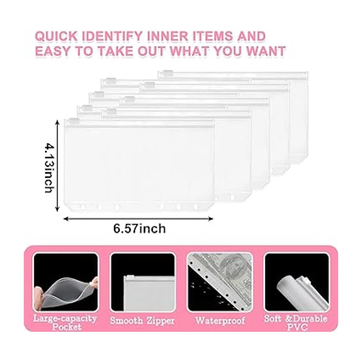 Perfecto para recibir: los bolsillos a juego están hechos de PVC suave con cremallera lisa sellada que es impermeable y transparente, perfecto para guardar y organizar efectivo. Las etiquetas adhesivas de recambio tienen 8 colores llamativos, que son gruesas y planas para escribir. Deja tu marca única en tu cuaderno de presupuesto de carpeta.