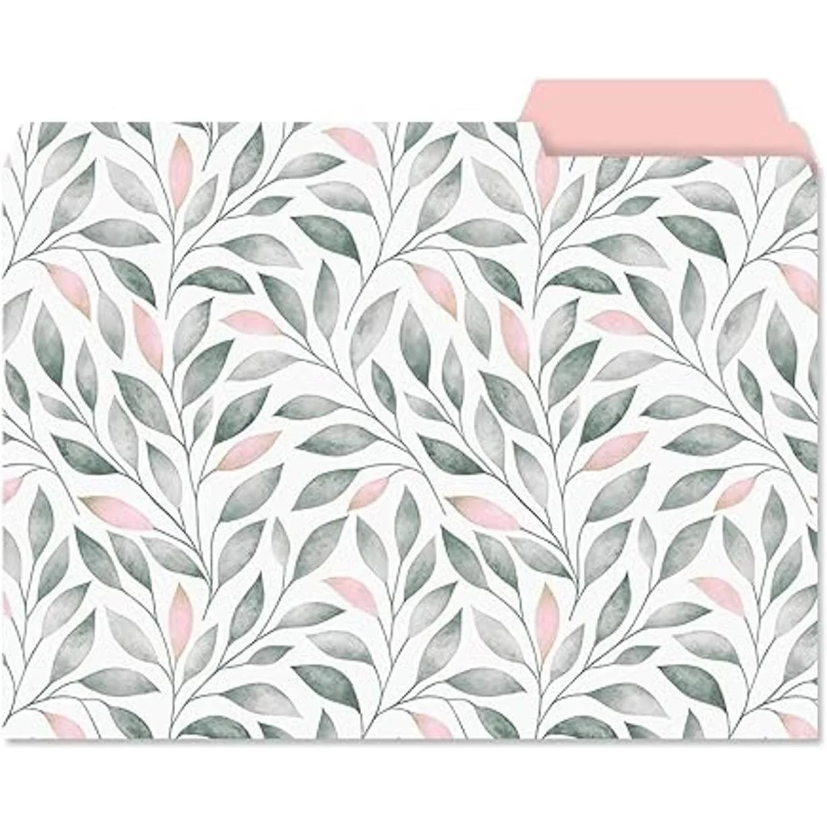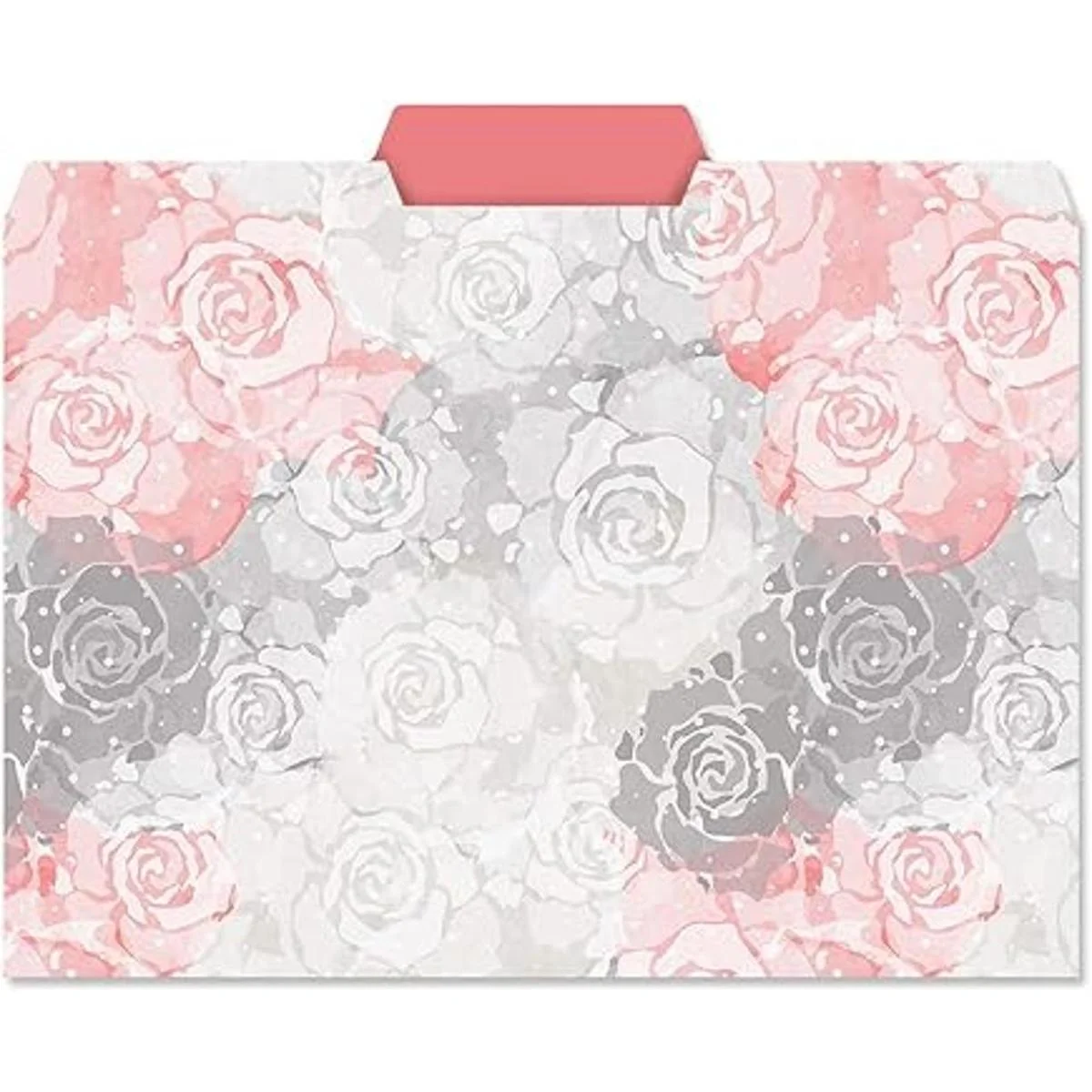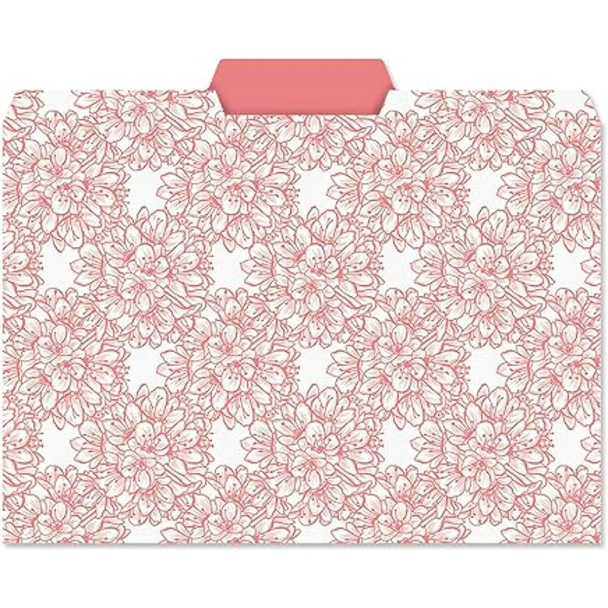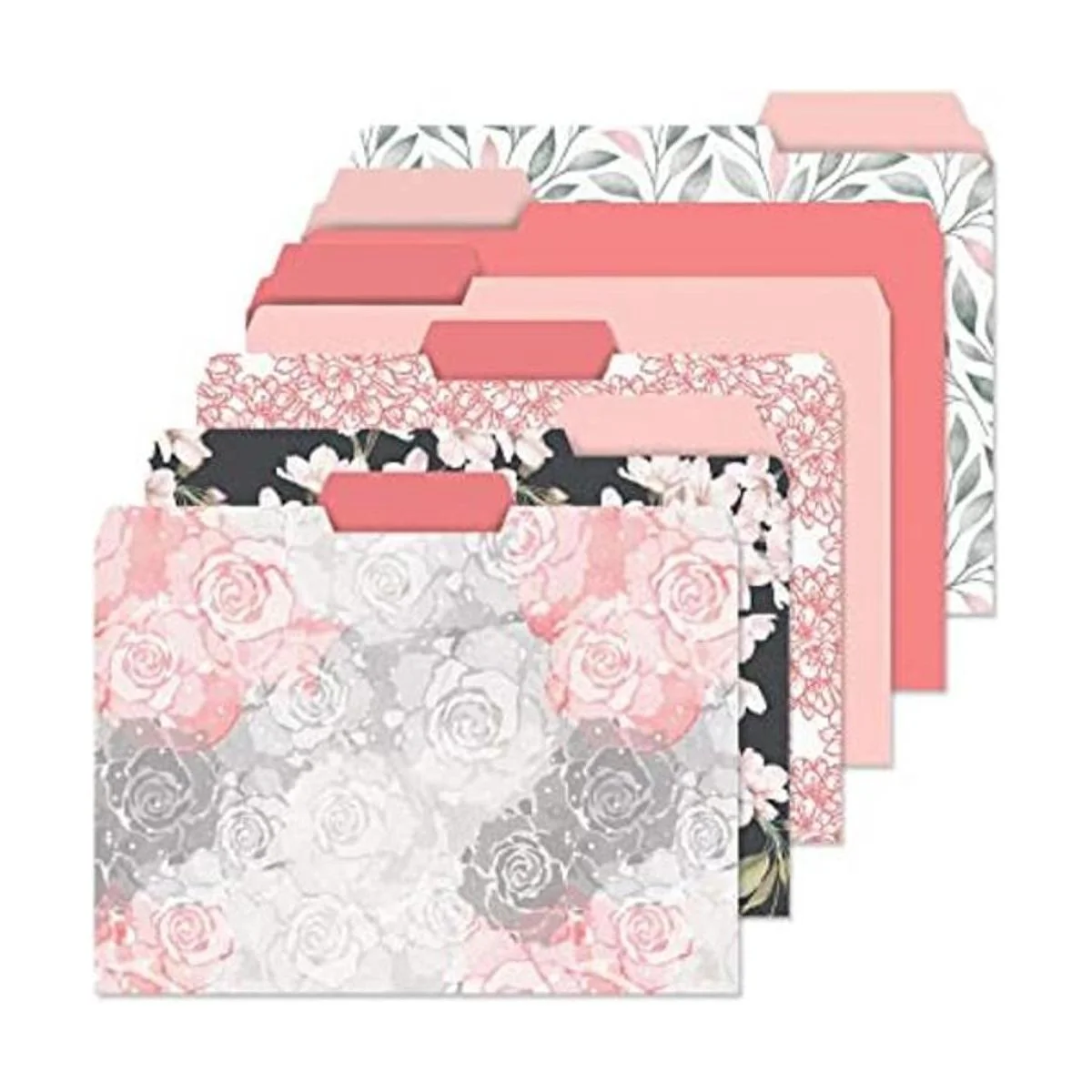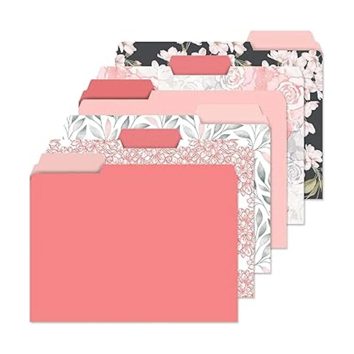 Carpetas de archivos de carbón y coral, paquete económico, juego de 24 6 diseños pestañas escalonadas de 13, diseños brillantes, colores rosados, suministros de oficina, tamaño carta, 9 x 11 pulgadas..