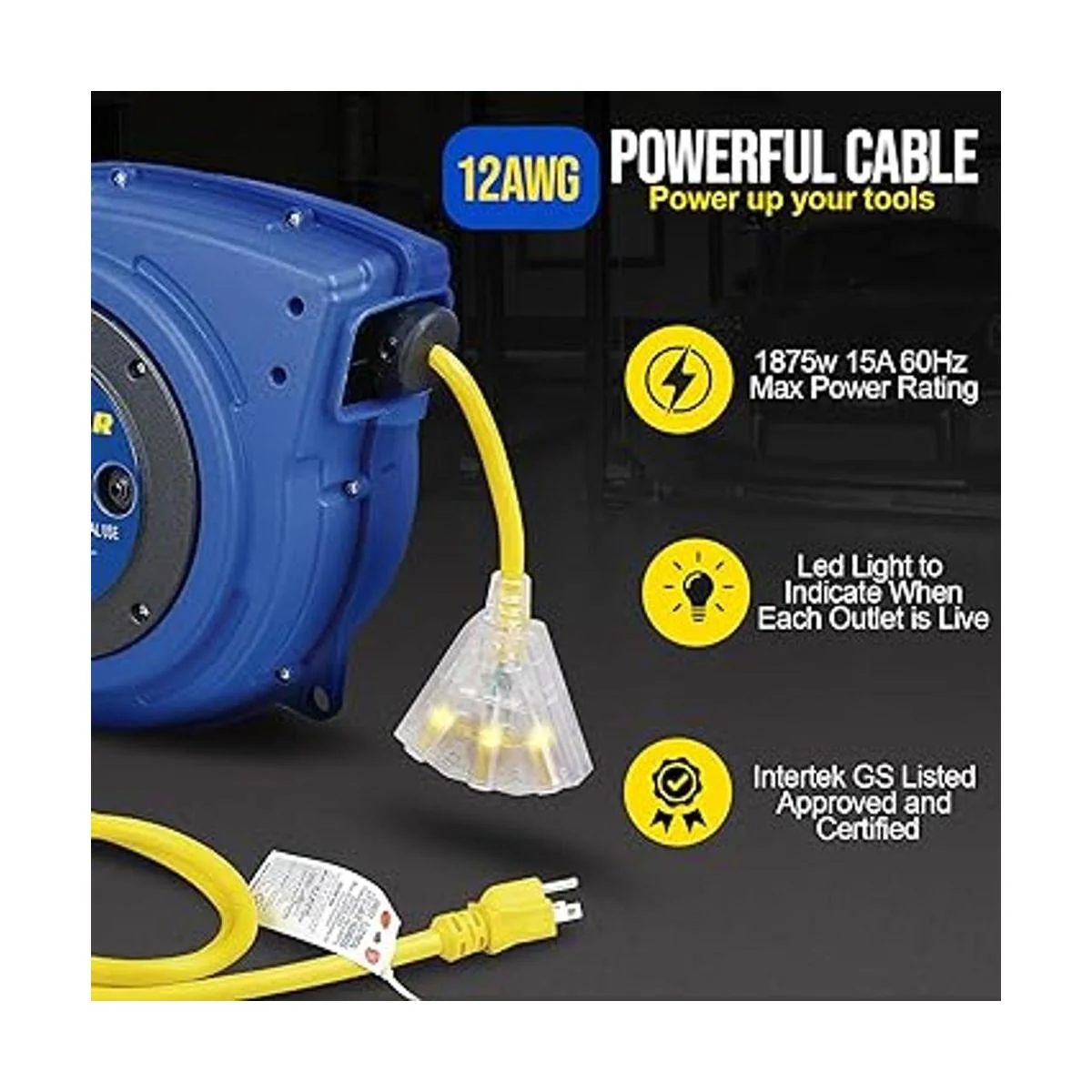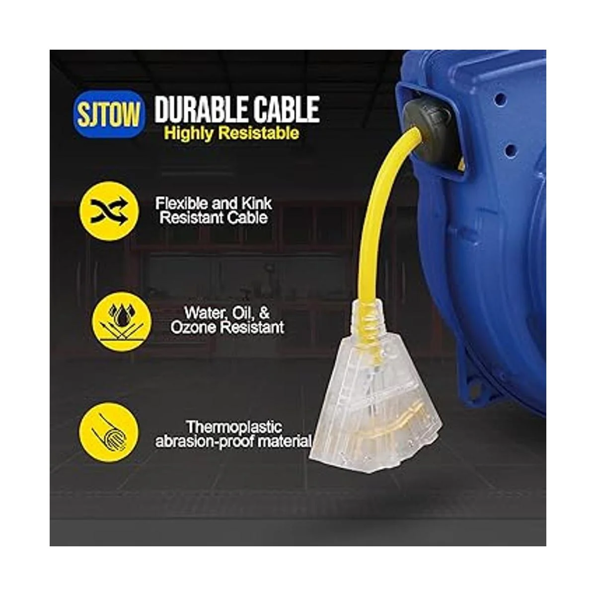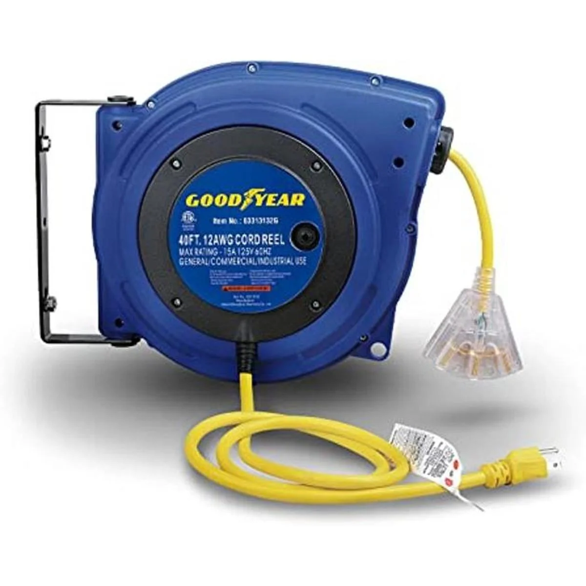 Carrete de extensión Goodyear resistente, 40 pies, 12AWG3C SJTOW, triple con conector con luz LED