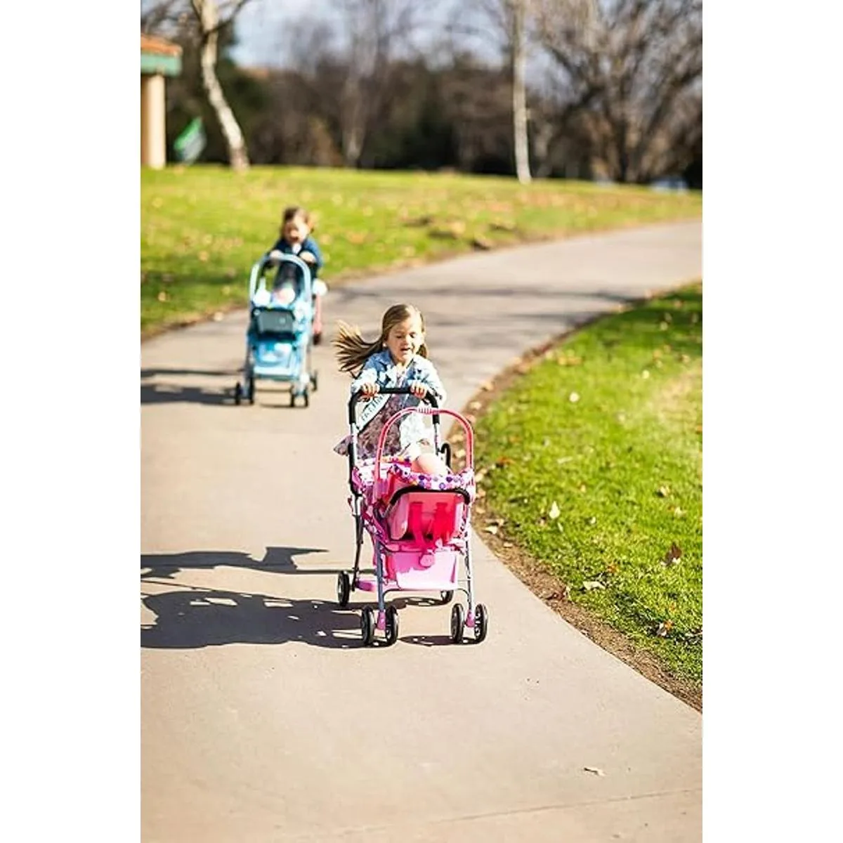 Cochecito de muñeca de lujo como el real con un adaptador de asiento de coche de muñeca, bandeja de aperitivos y pliegue compacto