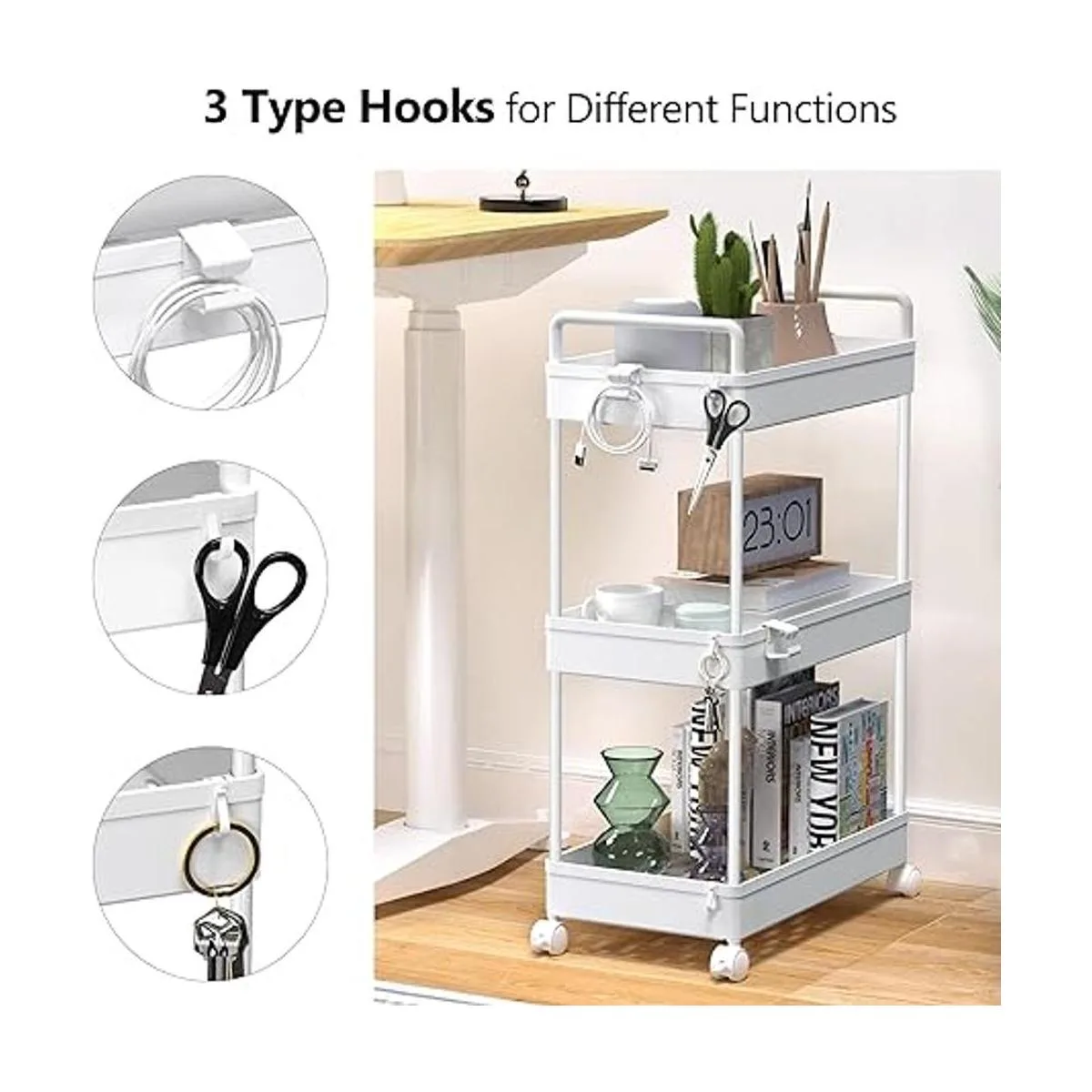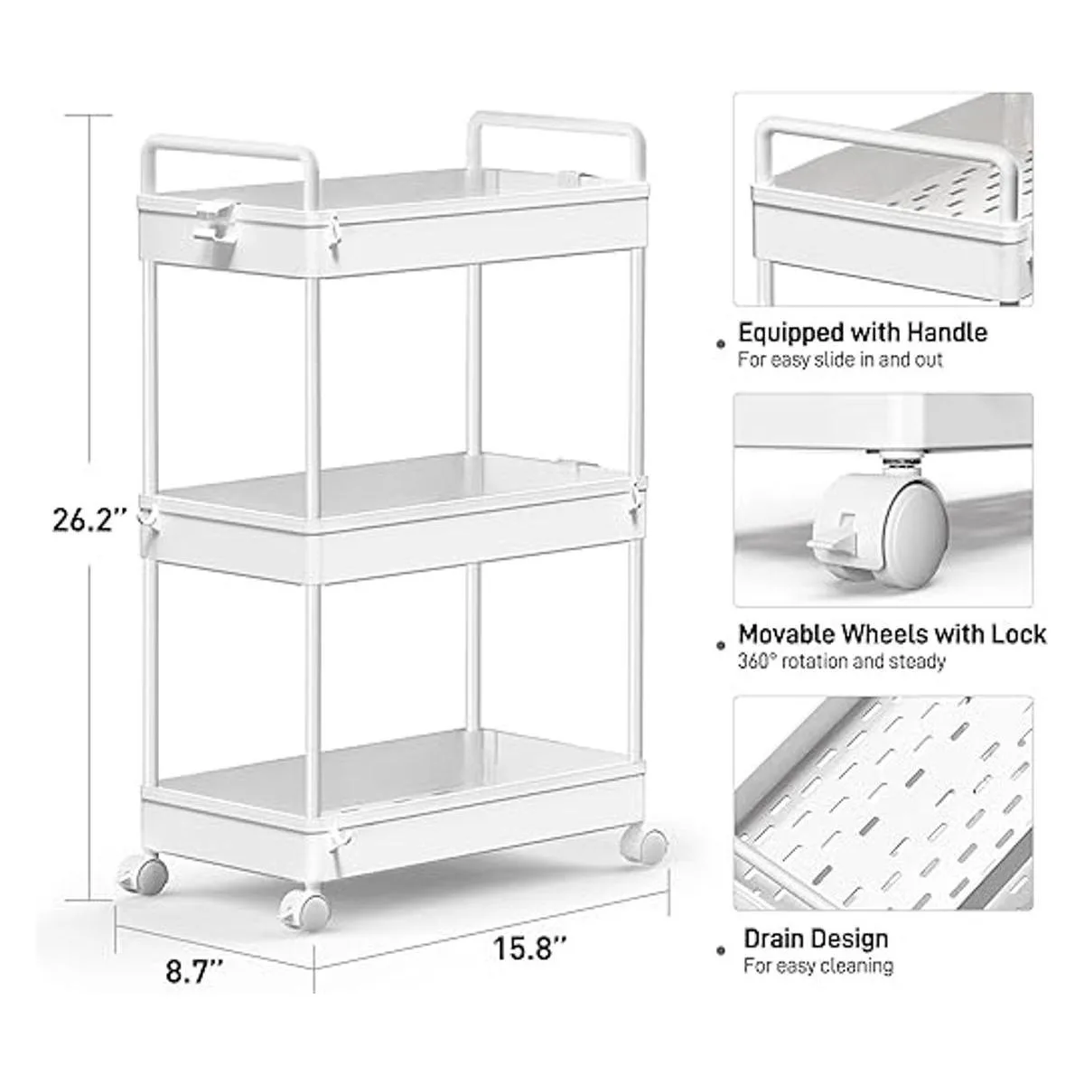Carrito de almacenamiento SOLEJAZZ con ruedas, organizador móvil con 3 niveles, estante de pie para cocina, baño, lavandería, color blanco